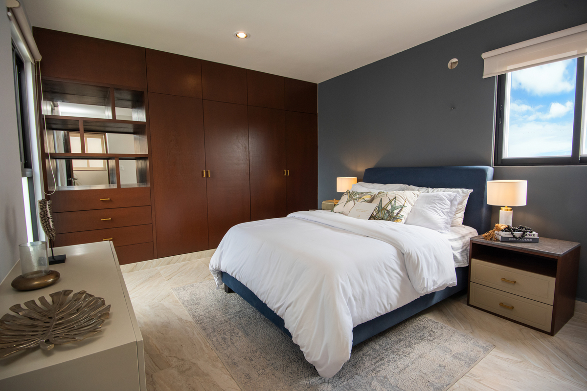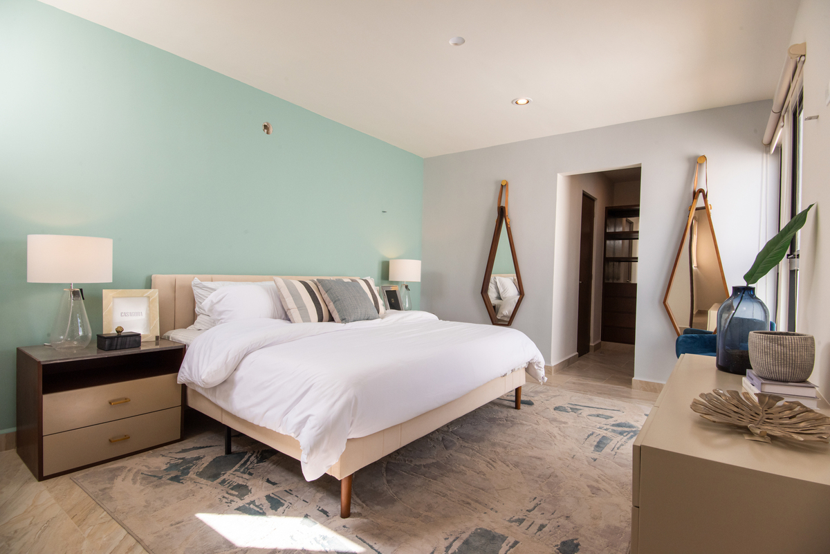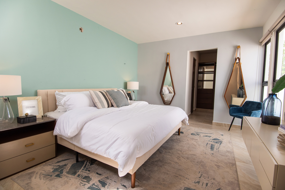 Recámara principal con baño y área para clóset vestidor.