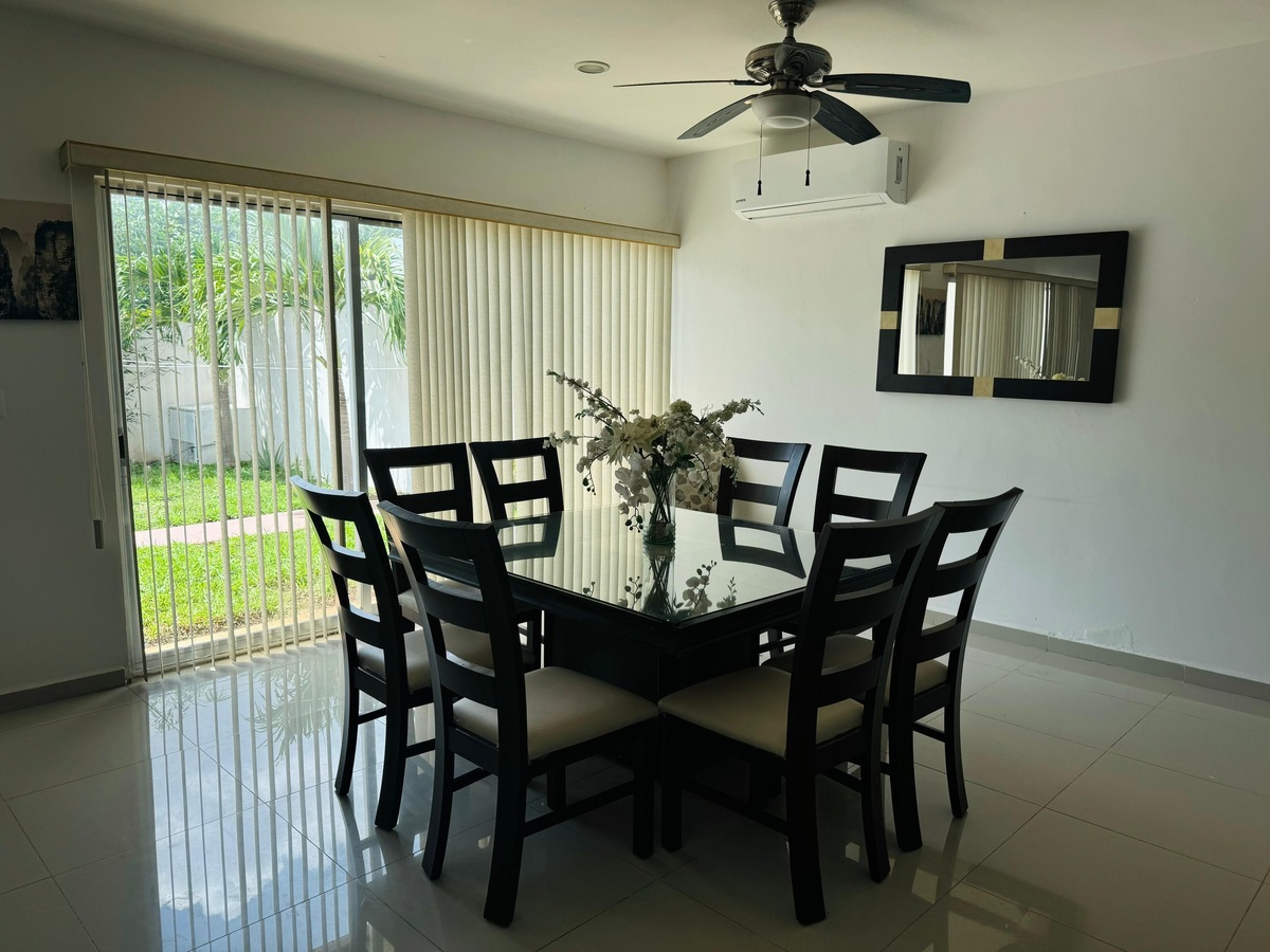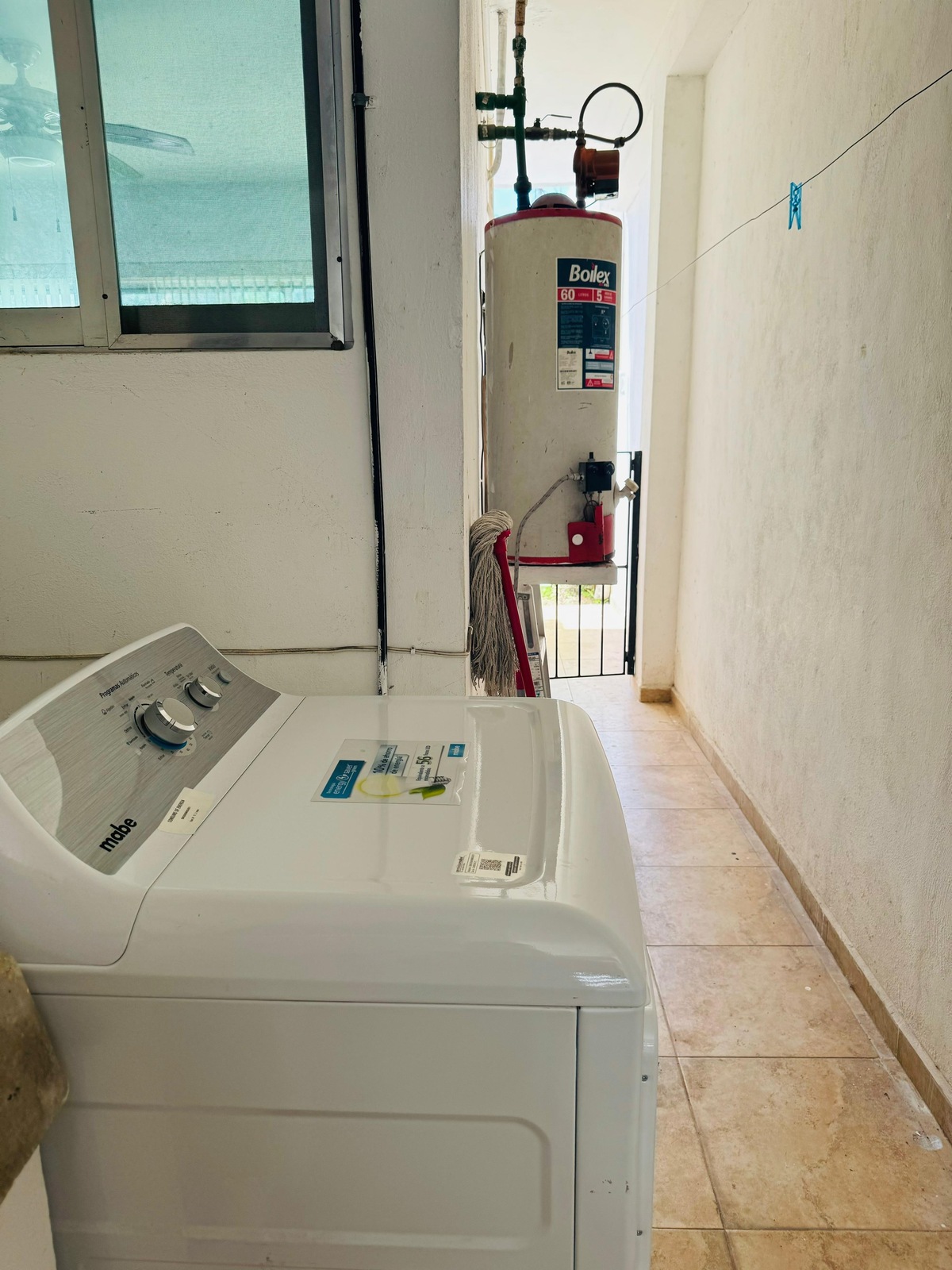 EQUIPAMIENTO: ventiladores en todas las recámaras y cocina, aires acondicionados en toda la casa, estufa de 6 fogones, refrigerador de doble puerta, cafetera, microondas, gas estacionario, lavadora, secadora.
