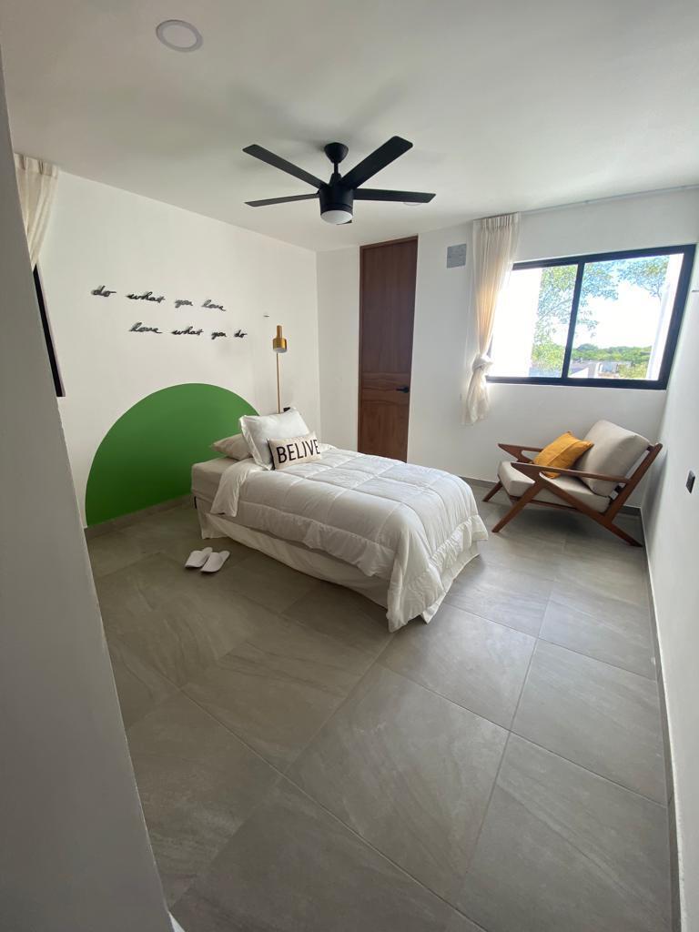El proyecto contempla dos camellones centrales que contienen espacios de recreación (juegos infantiles), estacionamiento para visitantes y áreas verdes con árboles y plantas típicas de la región para amortiguar las altas temperaturas de la península.