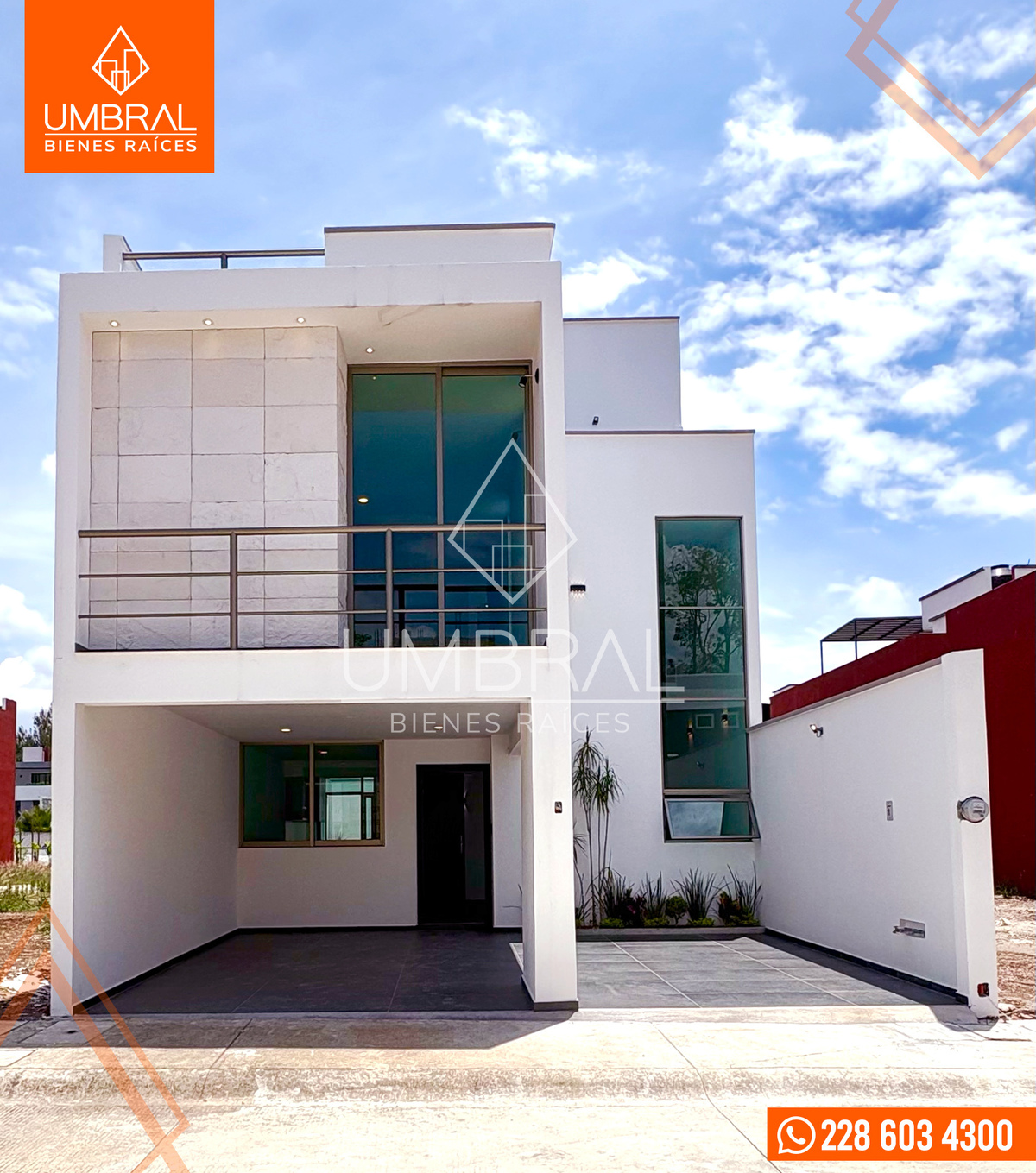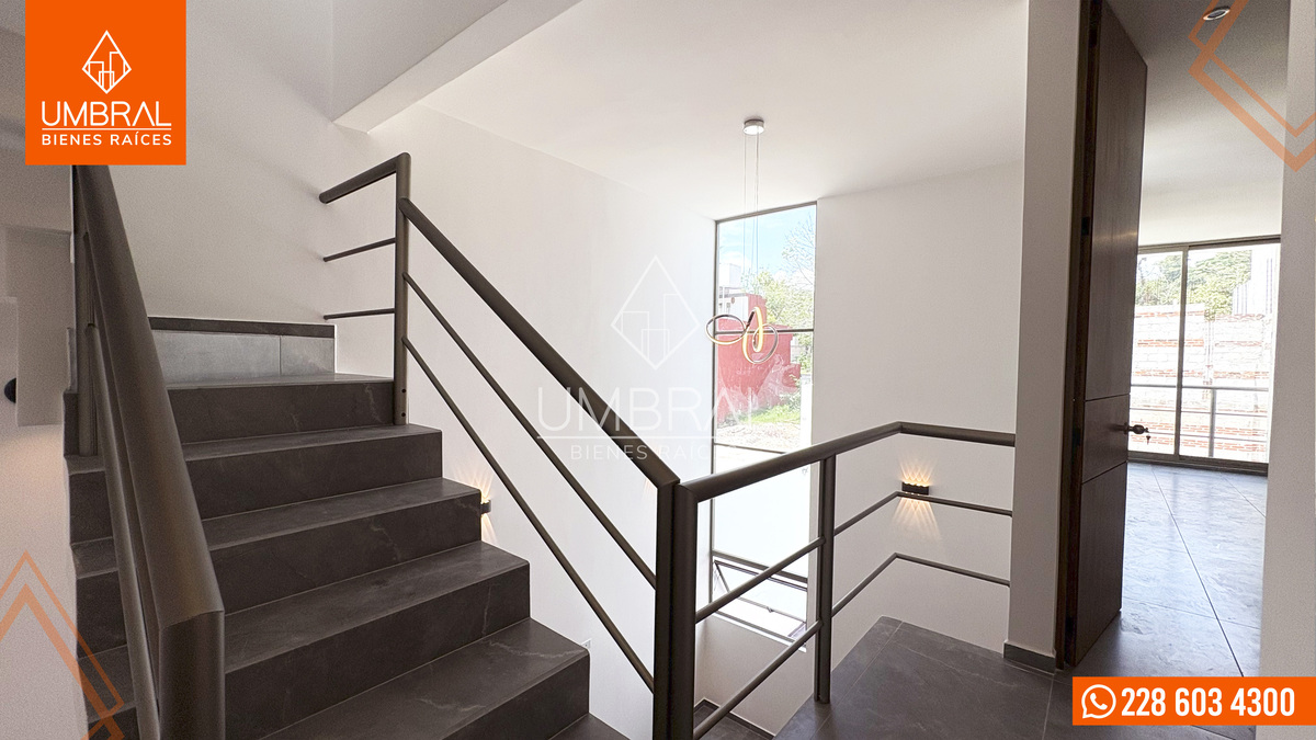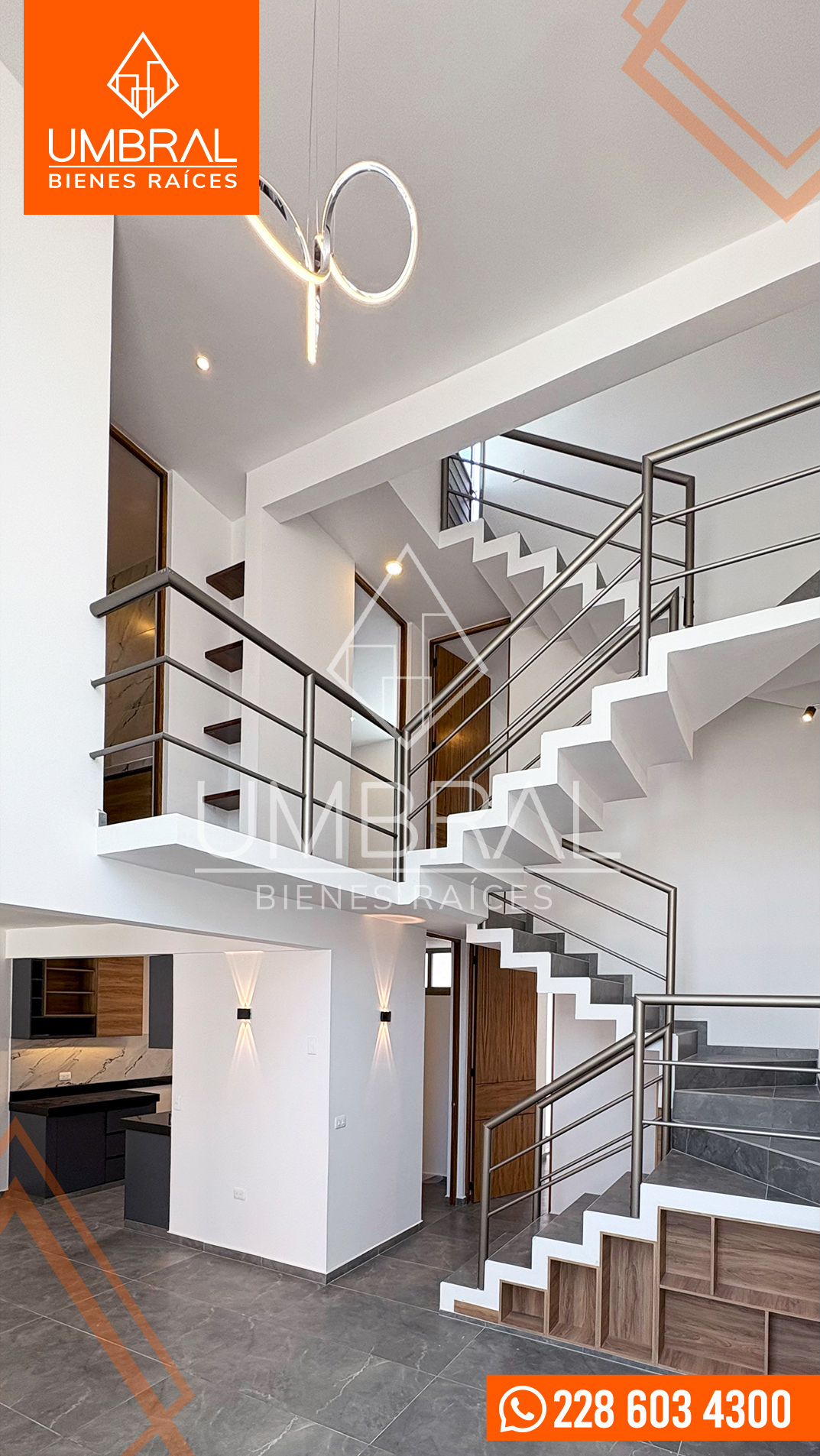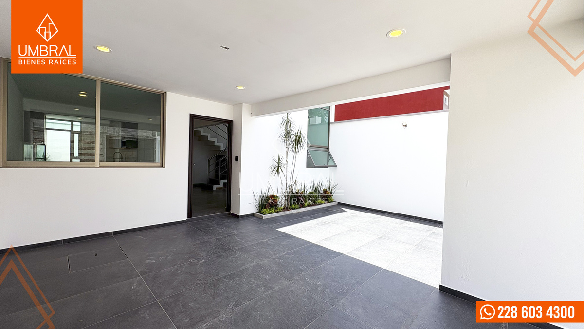 On the top level, we will find a beautiful roof garden with a service bar.En planta baja encontramos una cochera para 2 vehículos, sala a doble altura, comedor, cocina integral con barras de granito, jardín posterior y área de lavado techada, recámara en planta baja y baño completo.