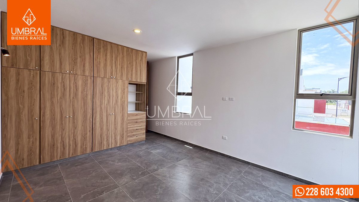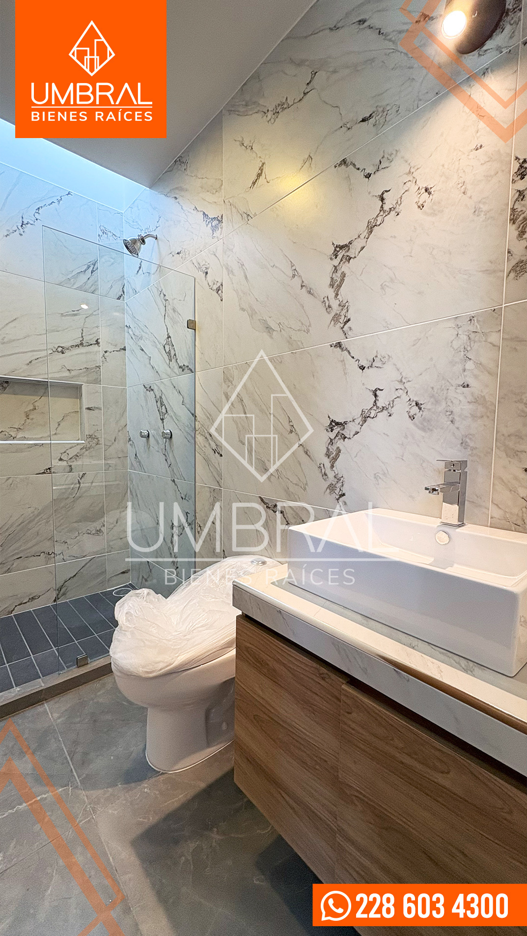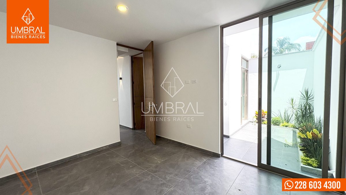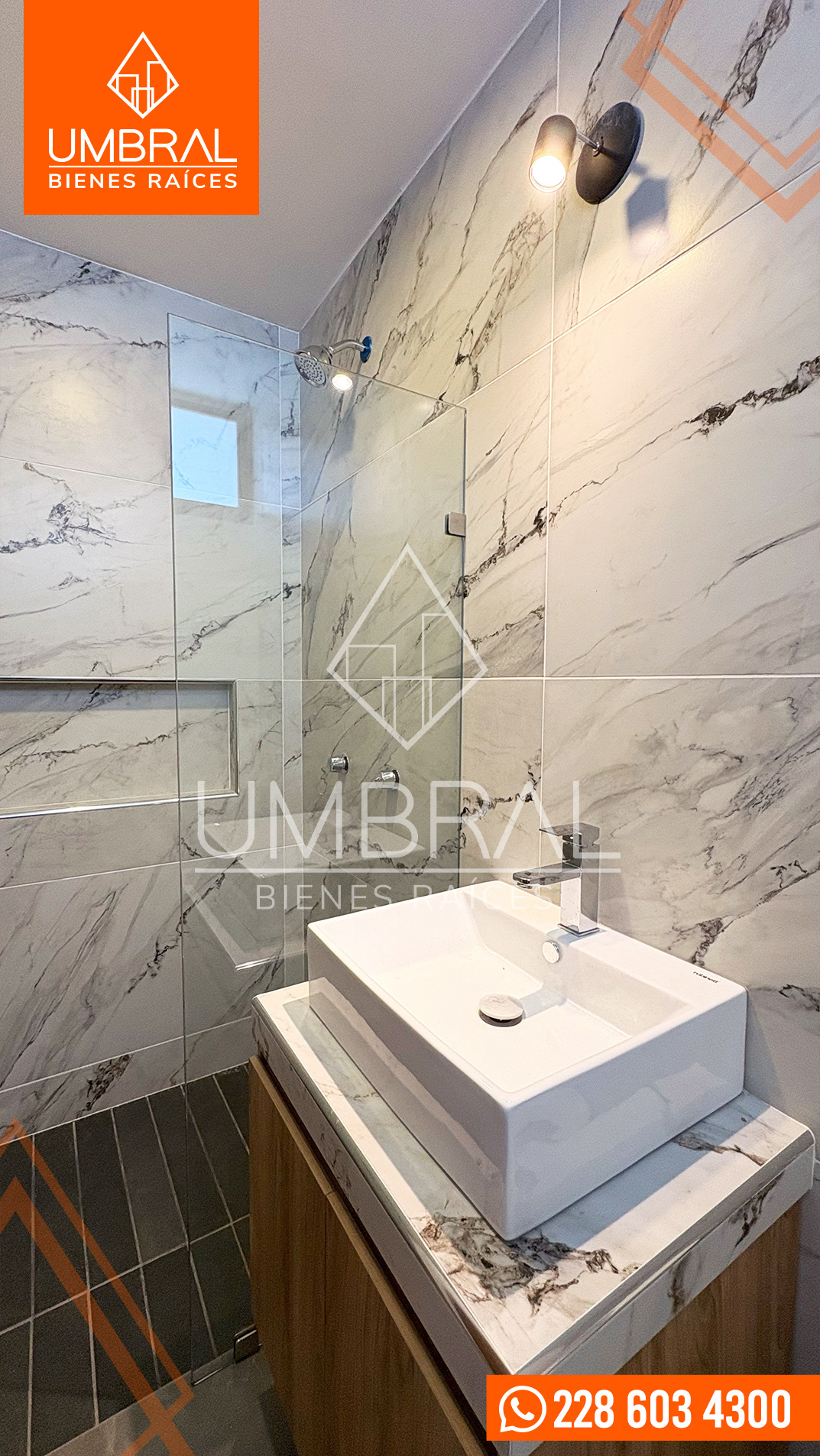 On the top level, we will find a beautiful roof garden with a service bar.En planta baja encontramos una cochera para 2 vehículos, sala a doble altura, comedor, cocina integral con barras de granito, jardín posterior y área de lavado techada, recámara en planta baja y baño completo.