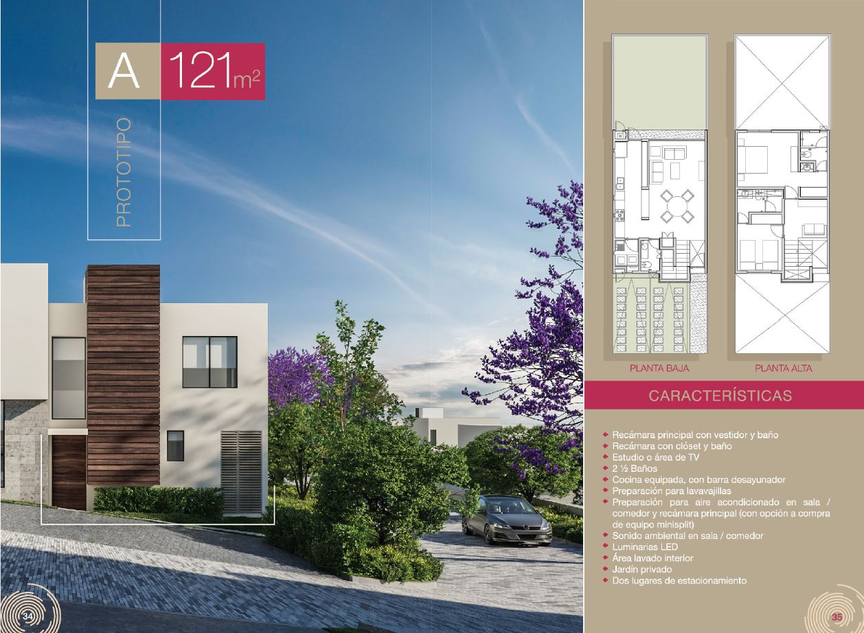 4 prototypes of houses with 2 and 3 bedrooms.Prototipo "A" 121 m2. de Construcción en dos niveles.