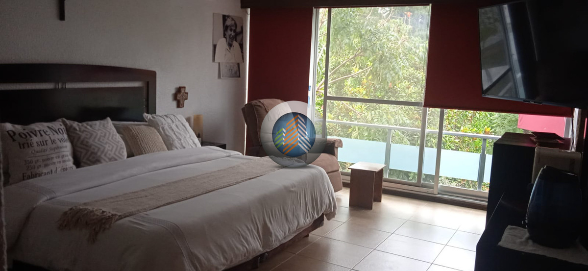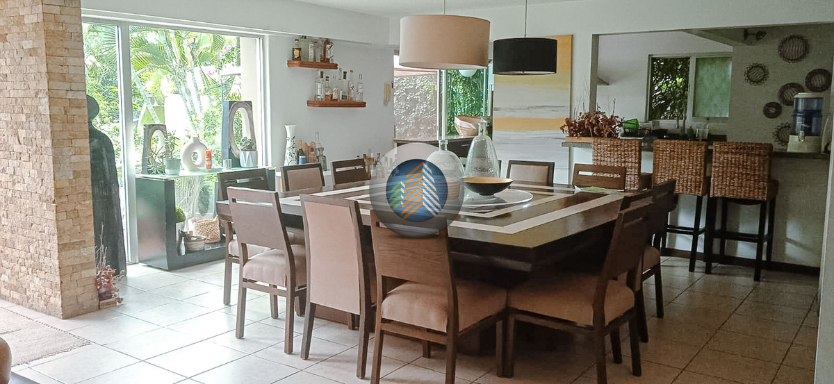 House for sale in the exclusive Tabachines Golf Club, at a super price below appraisal of 20 million, consisting of 982 square meters of land, 504 square meters of construction, and 300 square meters of flat garden adjacent to the river, remodeled rooms and bathrooms, in good condition, 8 spacious bedrooms plus a bungalow with independent bathroom, each bedroom with a full bathroom, two living areas for living room and dining room on different levels, two fully equipped kitchens, terrace on the 1st level with sunbathing area, heated pool and jacuzzi, large palapa with bar and view of the garden ideal for parties, barbecue area and fountain, very wooded, beautiful views and very bright, excellent option, Club house with restaurant, a very quiet place ideal for walking, golf course in front of the entrance of the house, ideal as an investment for renting in ABB.Se vende casa en el exclusivo Club de golf Tabachines, a un súper precio por debajo de avalúo de 20 millones, consta de 982 metros de terreno, 504 metros de construcción y 300 metros de jardín plano colindantes con el río, remodeladas habitaciones y baños, en buen estado de conservación, 8 amplias recamaras más un bungalow con baño independiente, cada recamara con baño completo, dos estancias para sala y comedor en distintos niveles, dos cocinas completamente equipadas, terraza en el 1er nivel con asoleadero, alberca y jacuzzi climatizadas, gran palapa con barra y vista al jardín ideal para fiestas, zona de asador y fuente, muy arbolada, bonitas vistas y muy iluminada, excelente opción, casa Club con restaurante, un lugar muy tranquilo e ideal para caminar, campo de golf frente a la entrada de la casa, ideal como inversión para rentar en abb.