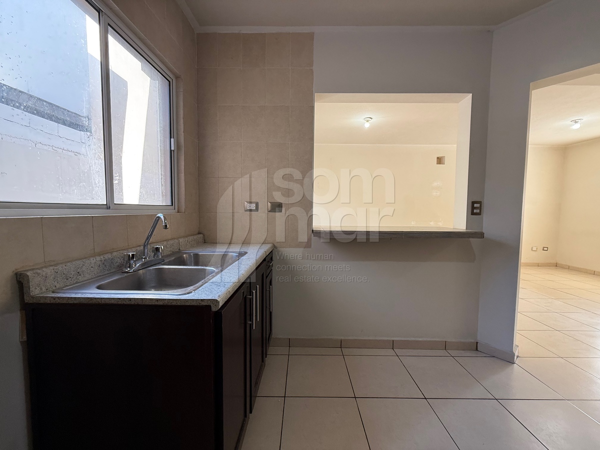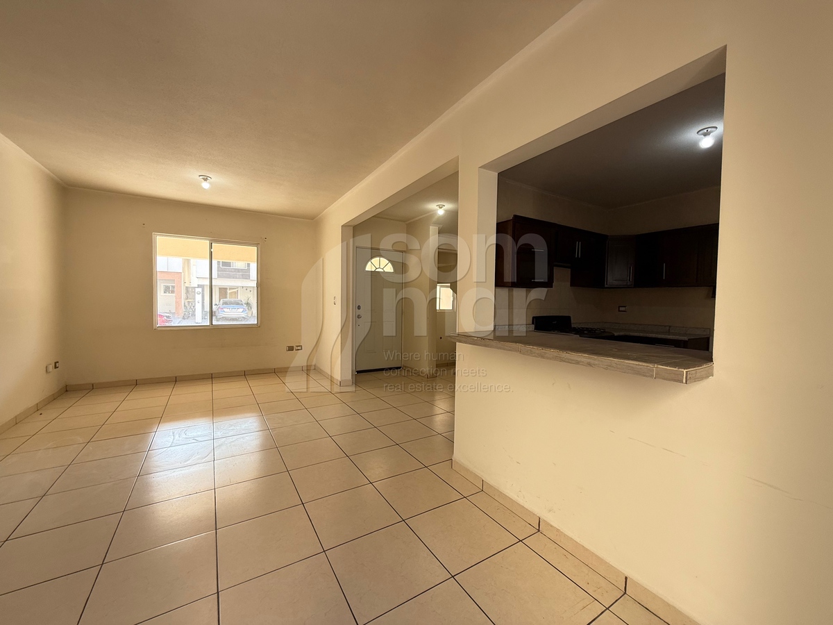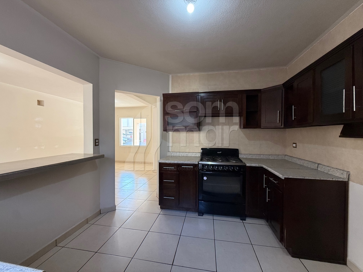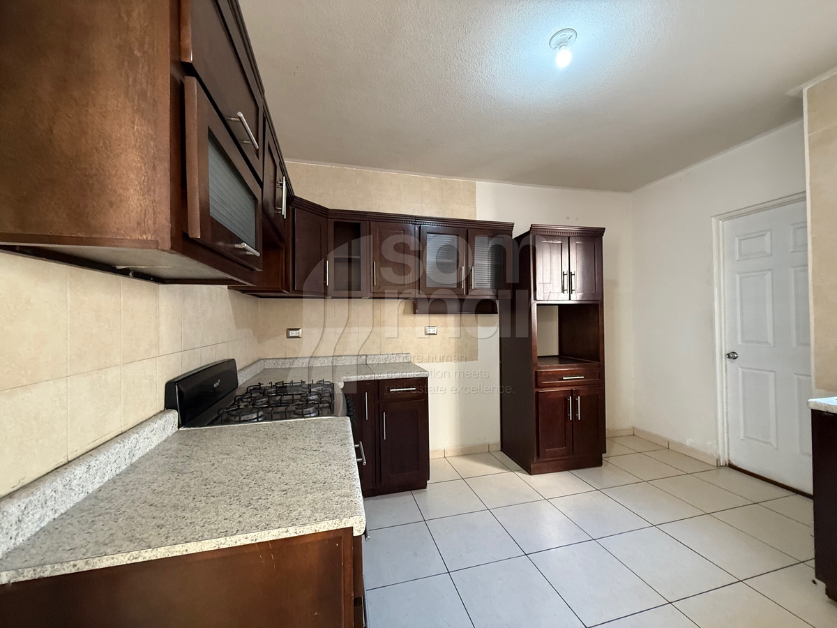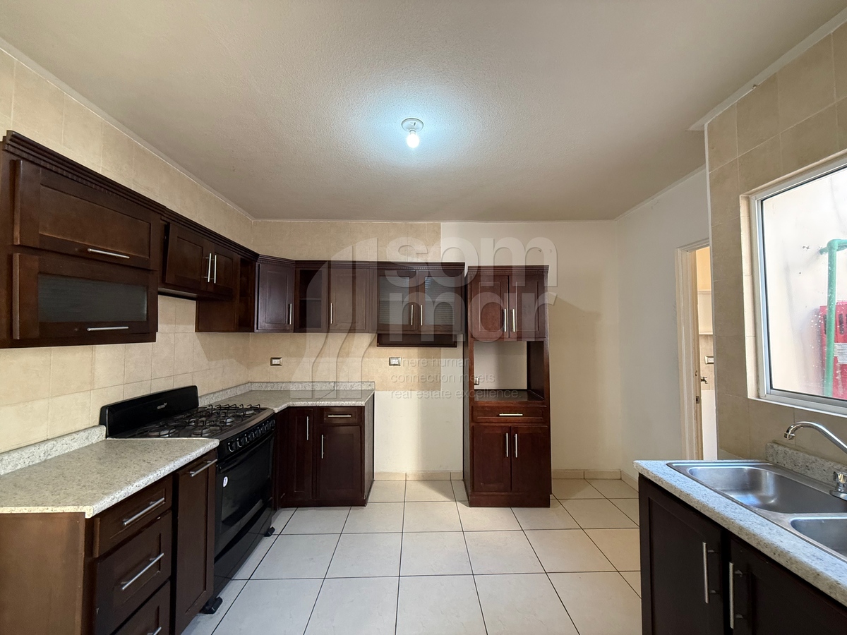This beautiful house combines comfort and functional design in every space. On the ground floor, it has a covered garage for two cars, a cistern, a half bathroom, and a fully equipped kitchen with a stove and breakfast bar. The living and dining areas are spacious and bright, with a sliding door that connects to the backyard, ideal for enjoying family gatherings. Additionally, it has a covered laundry room and a service hallway with a gas tank.