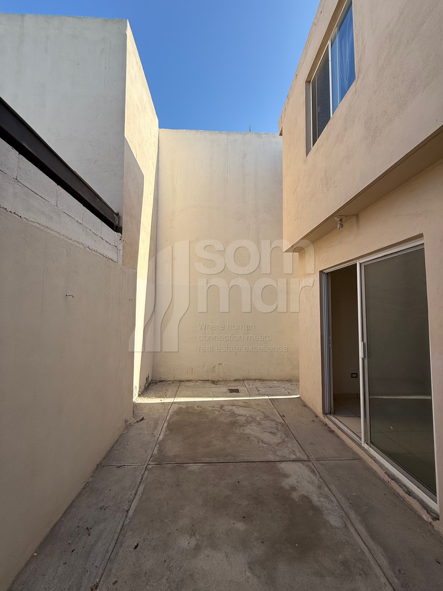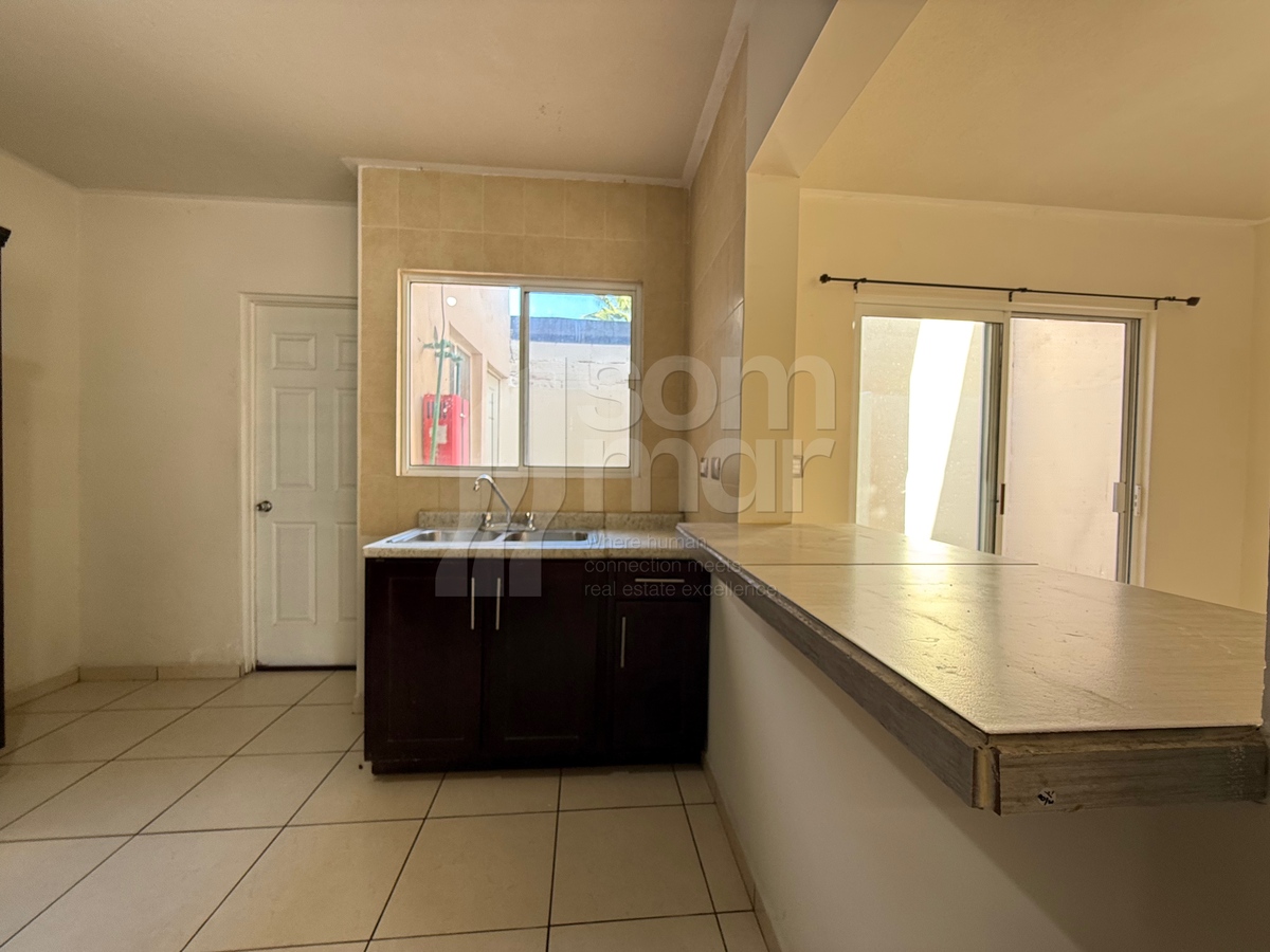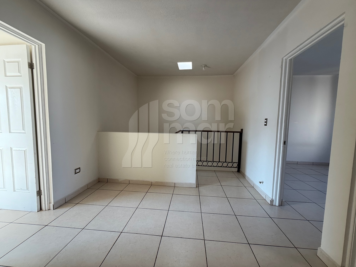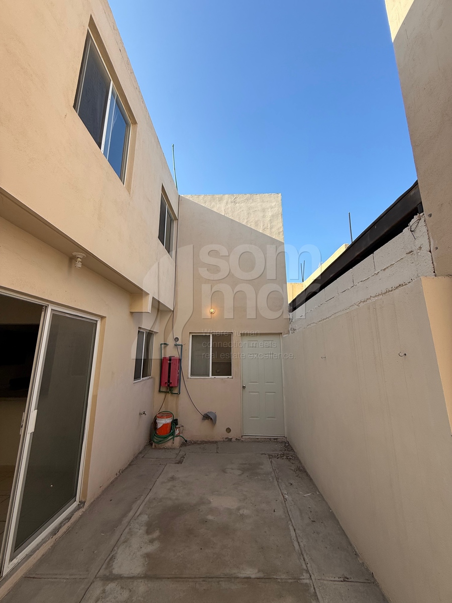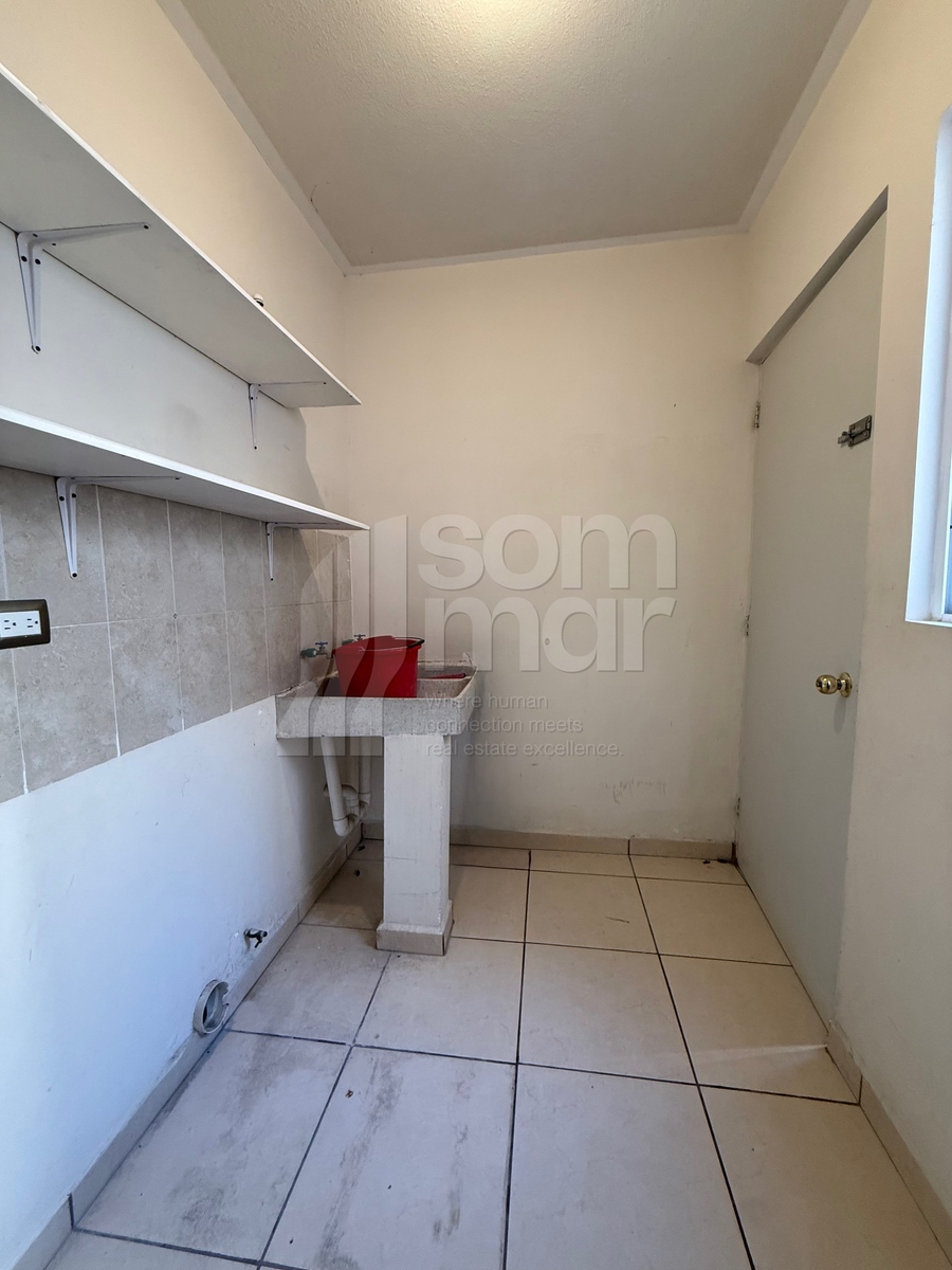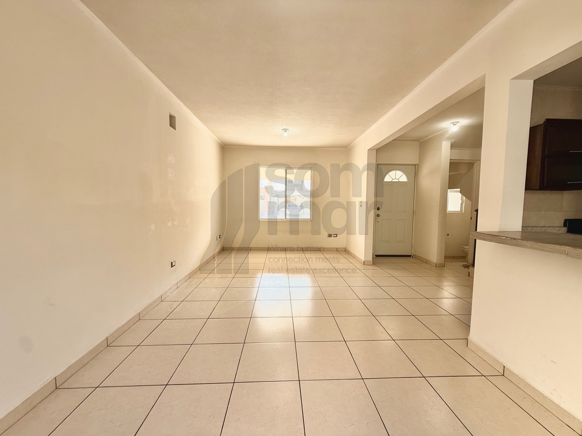 This beautiful house combines comfort and functional design in every space. On the ground floor, it has a covered garage for two cars, a cistern, a half bathroom, and a fully equipped kitchen with a stove and breakfast bar. The living and dining areas are spacious and bright, with a sliding door that connects to the backyard, ideal for enjoying family gatherings. Additionally, it has a covered laundry room and a service hallway with a gas tank.