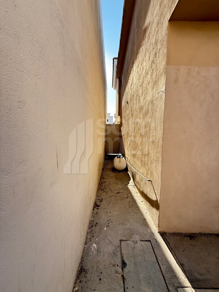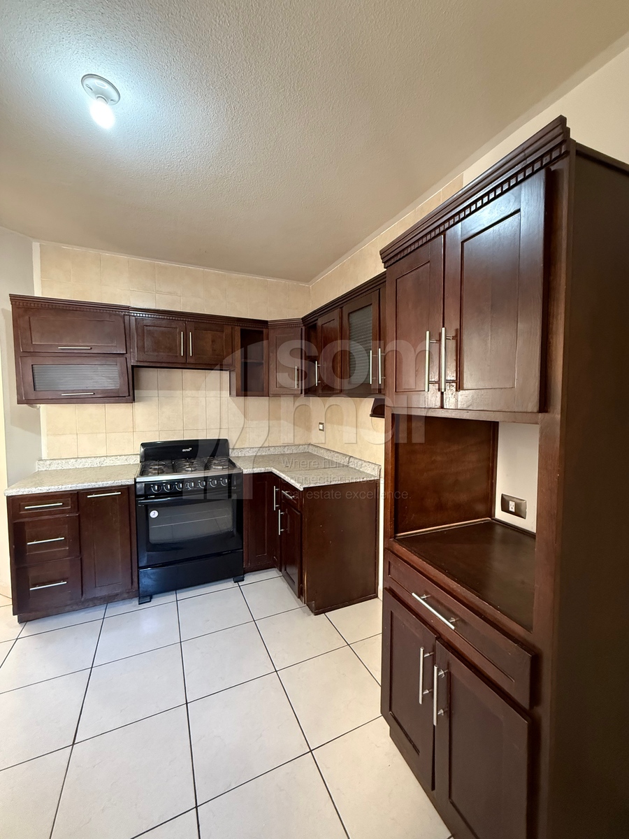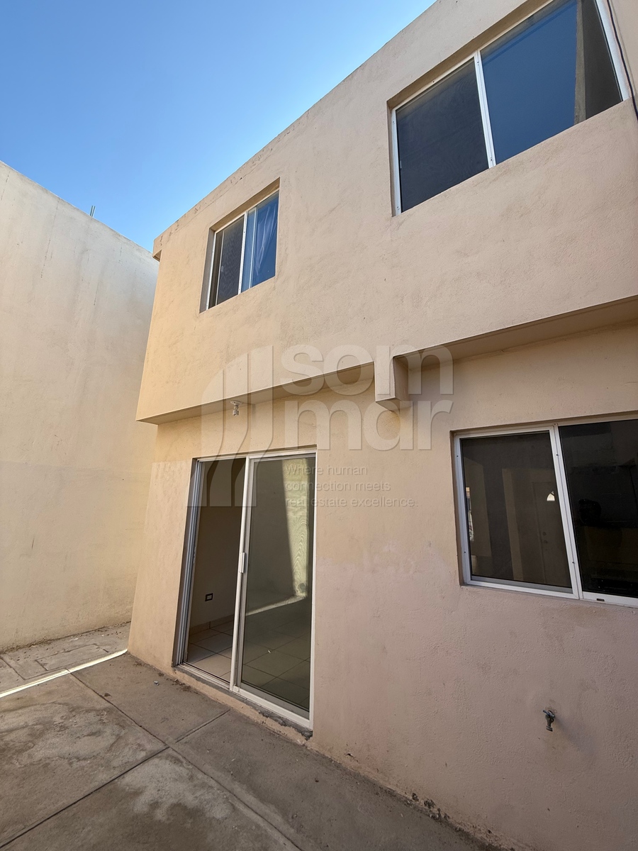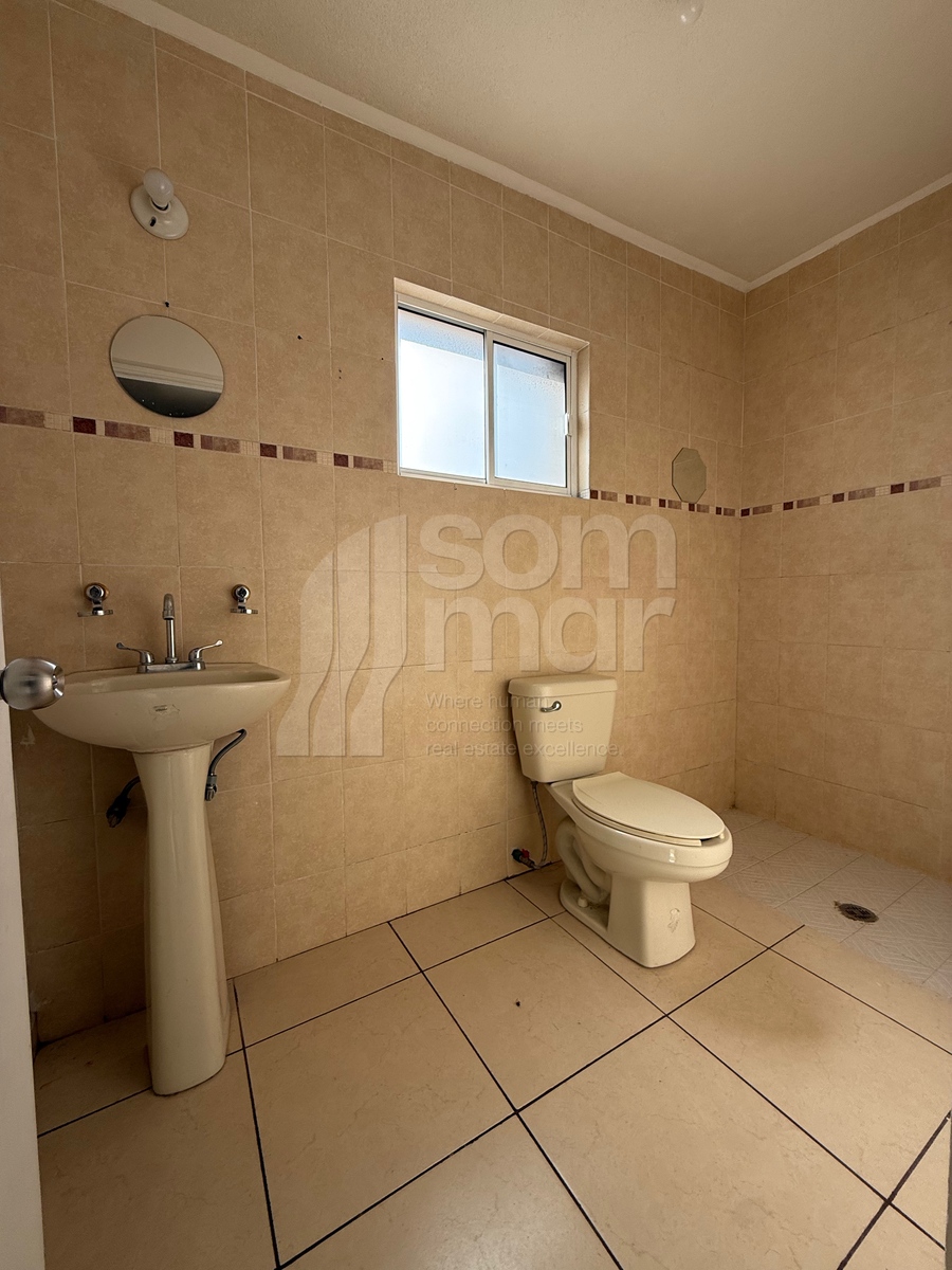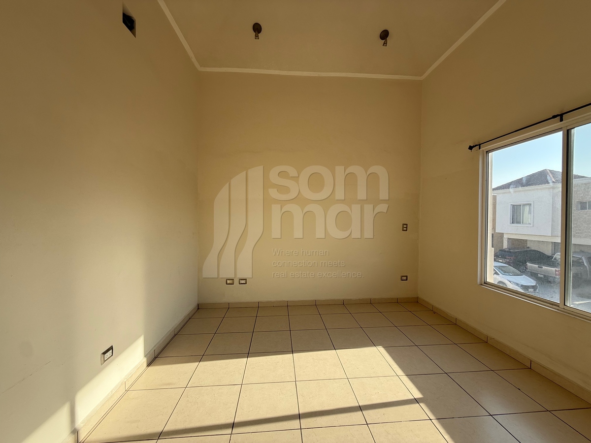 This beautiful house combines comfort and functional design in every space. On the ground floor, it has a covered garage for two cars, a cistern, a half bathroom, and a fully equipped kitchen with a stove and breakfast bar. The living and dining areas are spacious and bright, with a sliding door that connects to the backyard, ideal for enjoying family gatherings. Additionally, it has a covered laundry room and a service hallway with a gas tank.