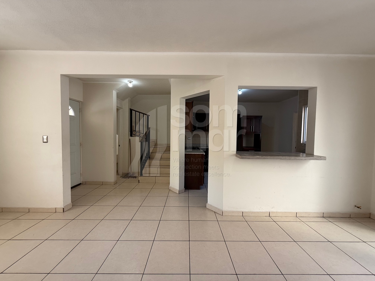 On the upper floor, you will find three bedrooms: the main one with a bathroom, dressing room, and closet, a second one with a closet, and the third one with a dressing room and closet, as well as a shared full bathroom and a small lounge perfect as a resting area or study.Esta hermosa casa combina comodidad y diseño funcional en cada espacio. En planta baja cuenta con cochera techada para dos autos, aljibe, medio baño, y una cocina integral equipada con estufa y barra desayunadora. Los espacios de sala y comedor son amplios y luminosos, con cancel que conecta al patio trasero, ideal para disfrutar reuniones familiares. Además, cuenta con lavandería techada y pasillo de servicio con tanque de gas.
