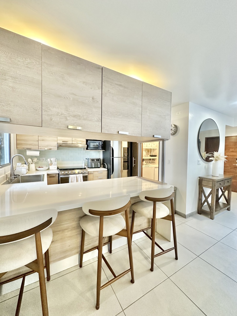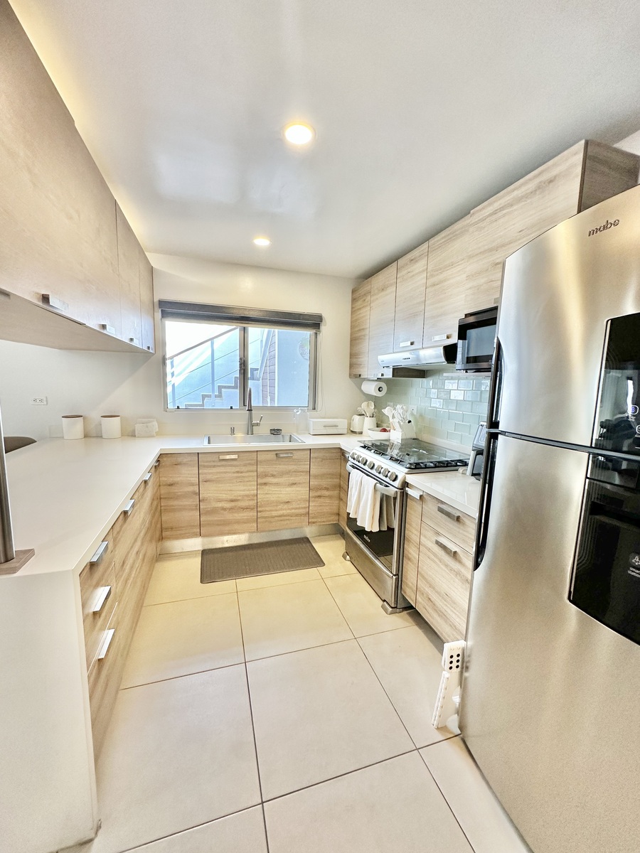 Sin embargo, sí se incluyen los electrodomésticos mencionados en la descripción: refrigerador, estufa, minifridge y lavadoras.