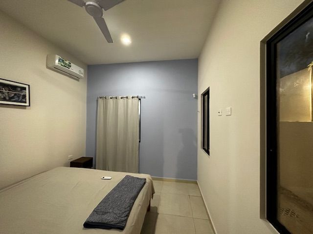 1 habitación con cama queen size, con Aire acondicionado y ventilador.
