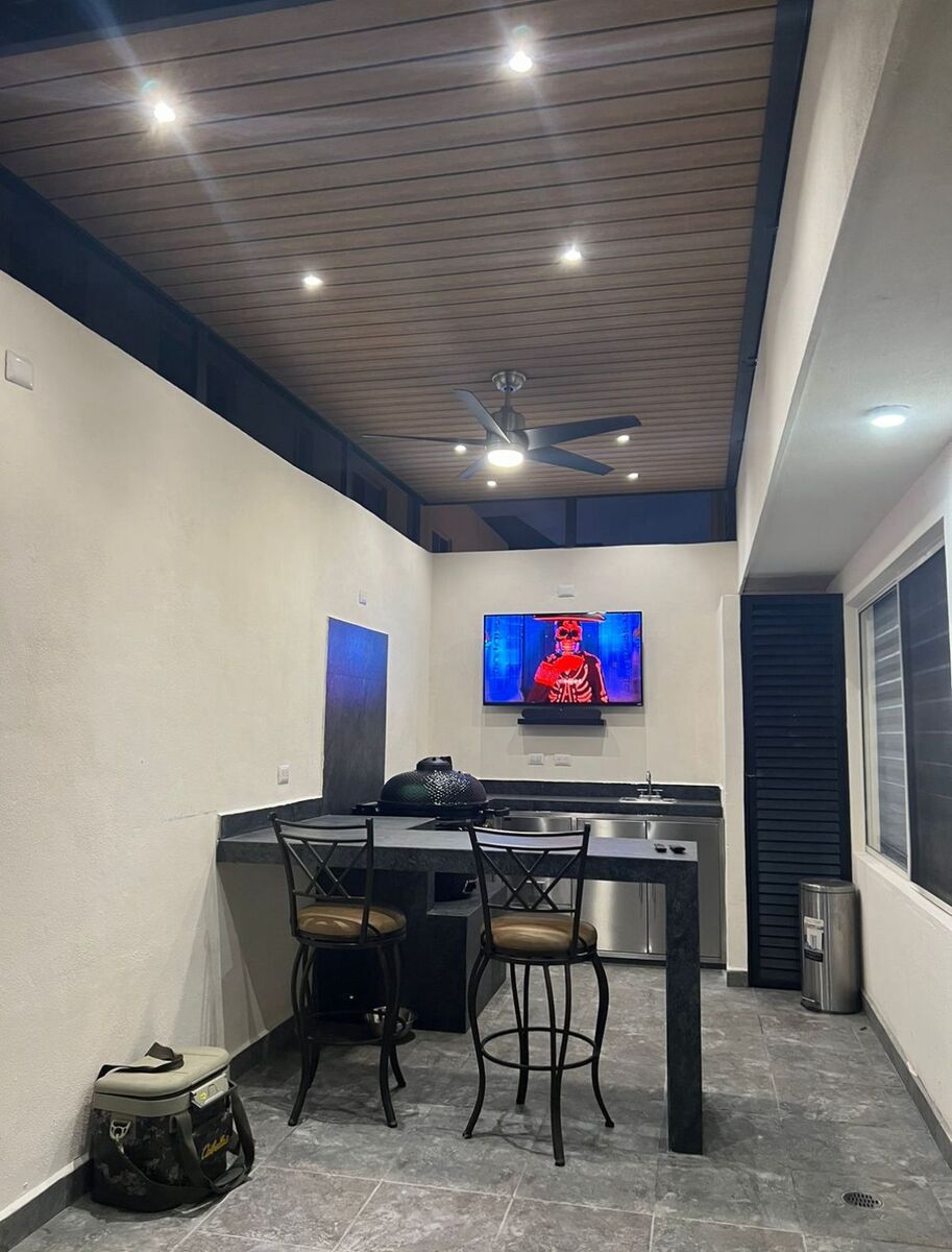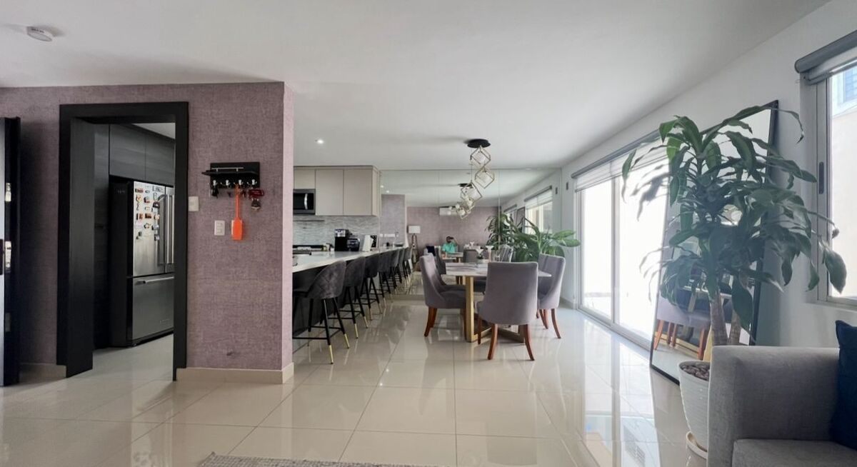 Equipamiento : estufa , microondas , campana ,cocina, cancelaría , closets , espejos led en baños , portón eléctrico, camas, comedor, sala , área social patio , minisplits en todas las habitaciones incluyendo estancia segundo nivel y en sala comedor