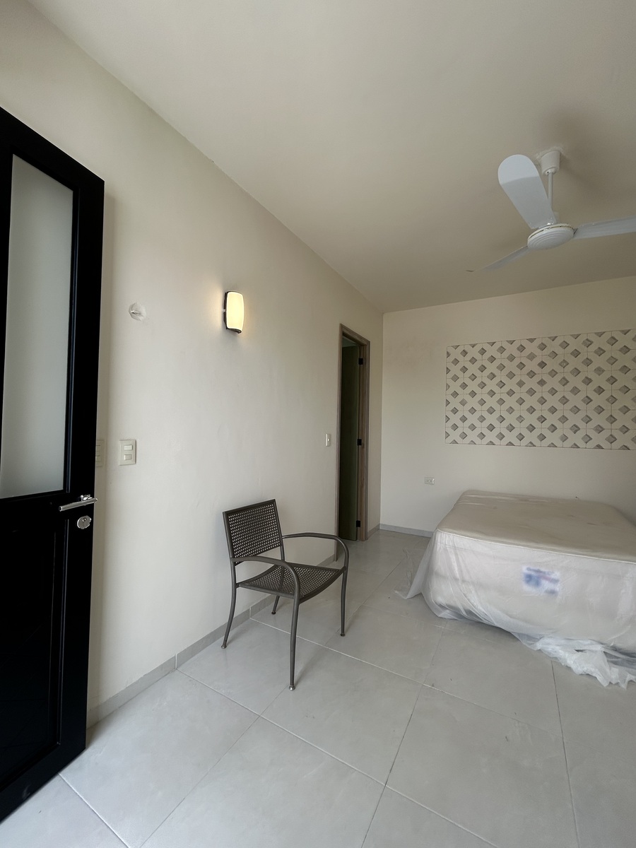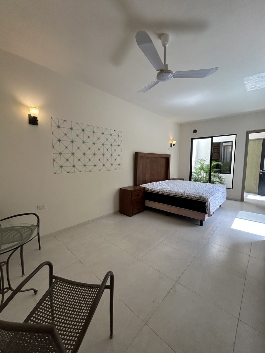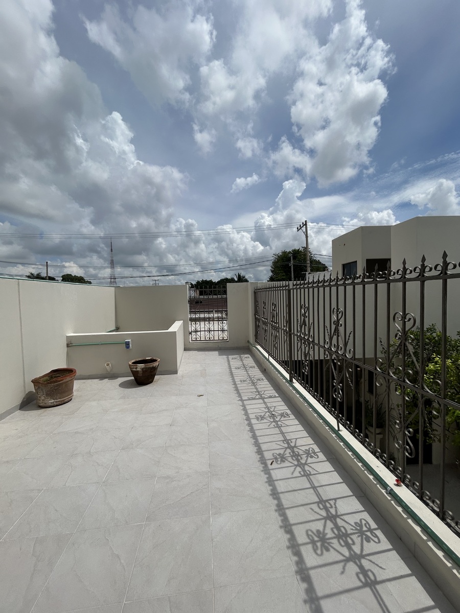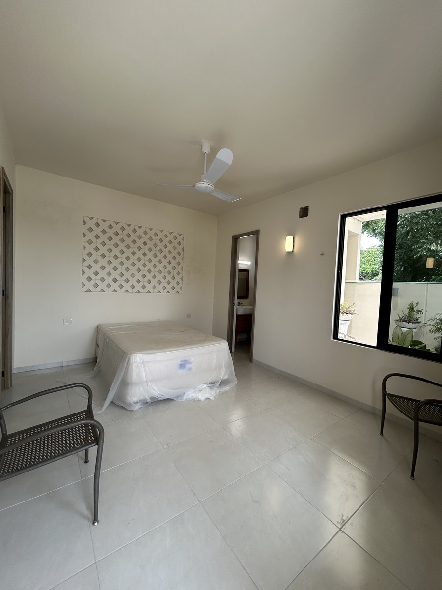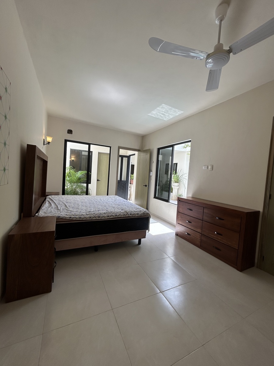 La casa está completamente amueblada y equipada con aires acondicionados, mosquiteros, cortinas y vidriería con un grosor especial que no permite que el Ruido de la calle se escuche dentro de la casa.