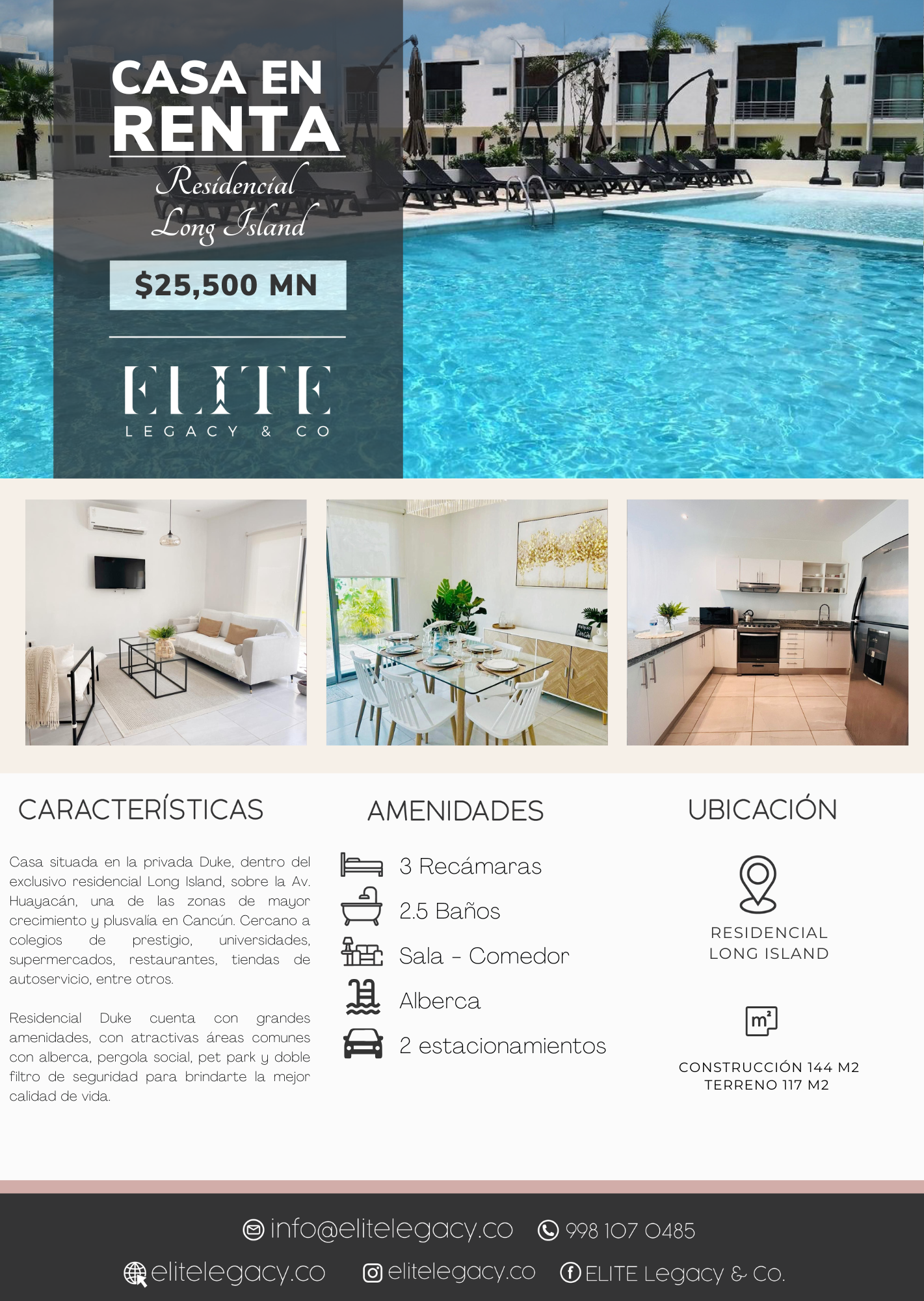 House located in the private Duke, within the exclusive residential Long Island, on Av. Huayacán, one of the fastest growing and most valuable areas in Cancun. Close to prestigious schools, universities, supermarkets, restaurants, convenience stores, among others.