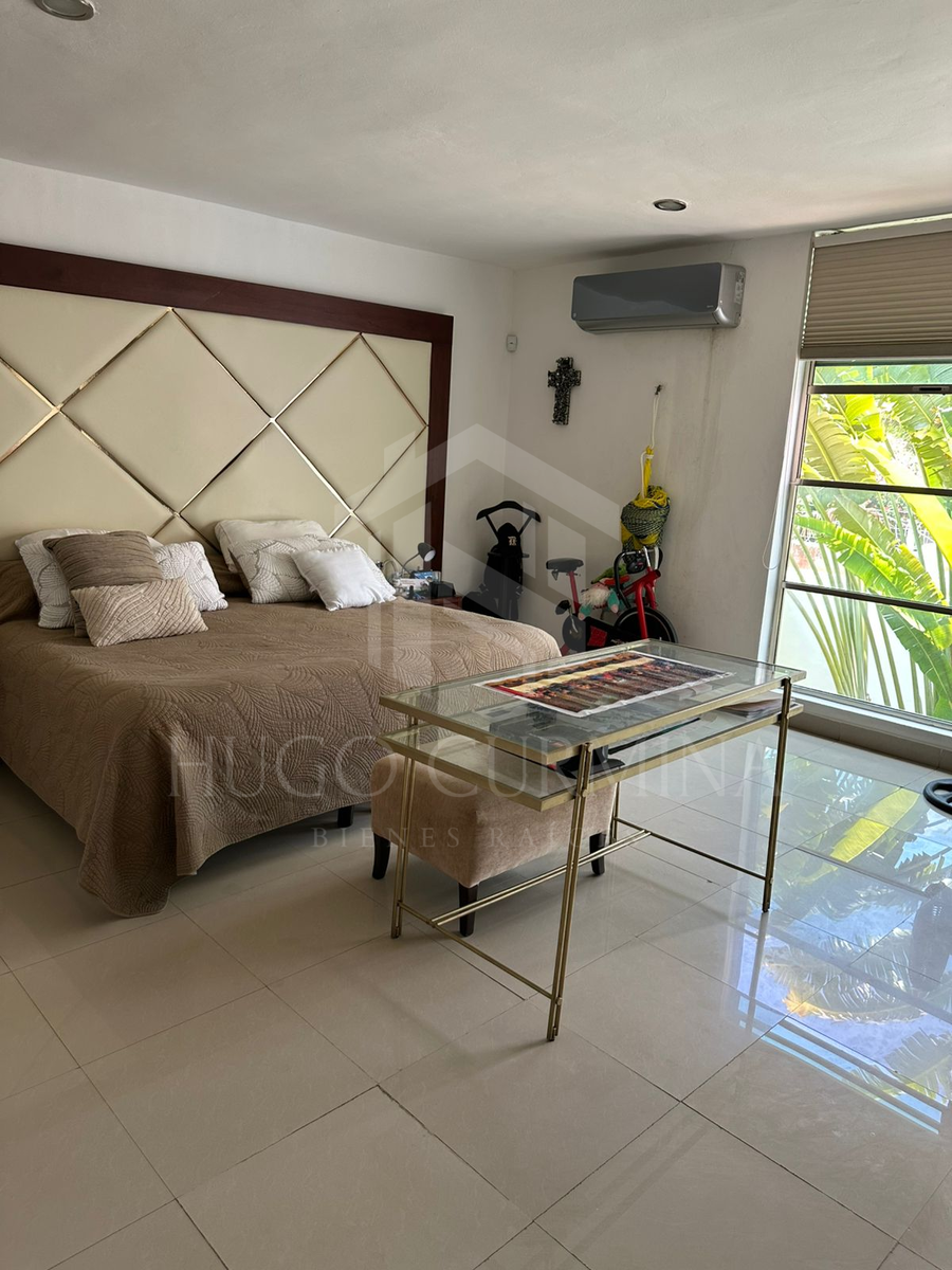 Disfruta del confort, la amplitud y la seguridad que ofrece esta hermosa residencia, totalmente amueblada y desocupada, lista para habitar. Esta propiedad ubicada en Calle Kukulkán #26, cerca del Parque Ximbal, cuenta con: