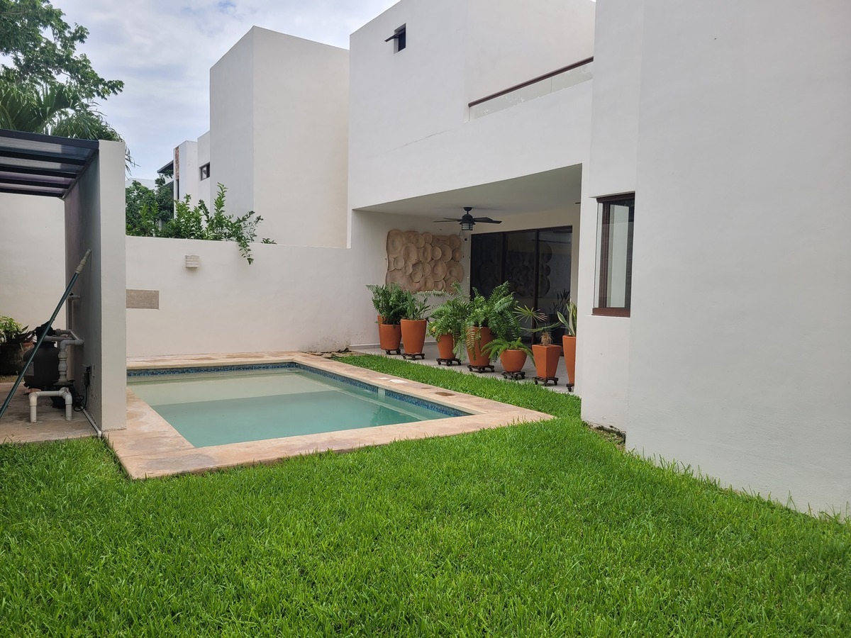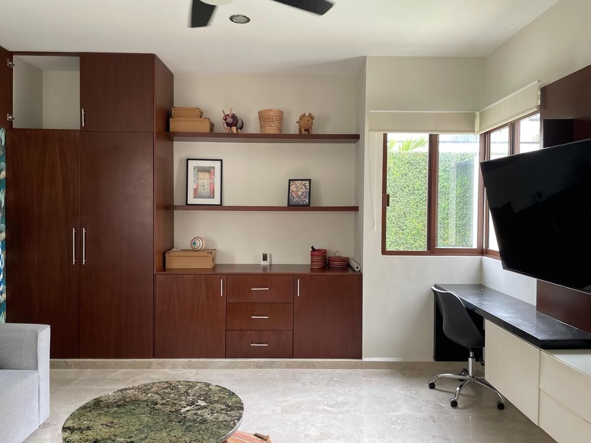 Garage techado para 6 autos, jardin delantero, sala comedor corrido, cocina grande equipada y con utensilios, medio baño de visitas, estudio, oficina y closet, terraza y jardín con picina , cuarto de lavado.