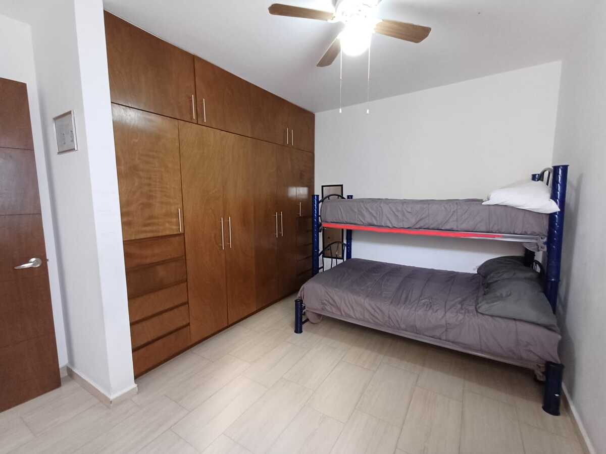 Recámara secundaria: litera matrimonial, baño completo