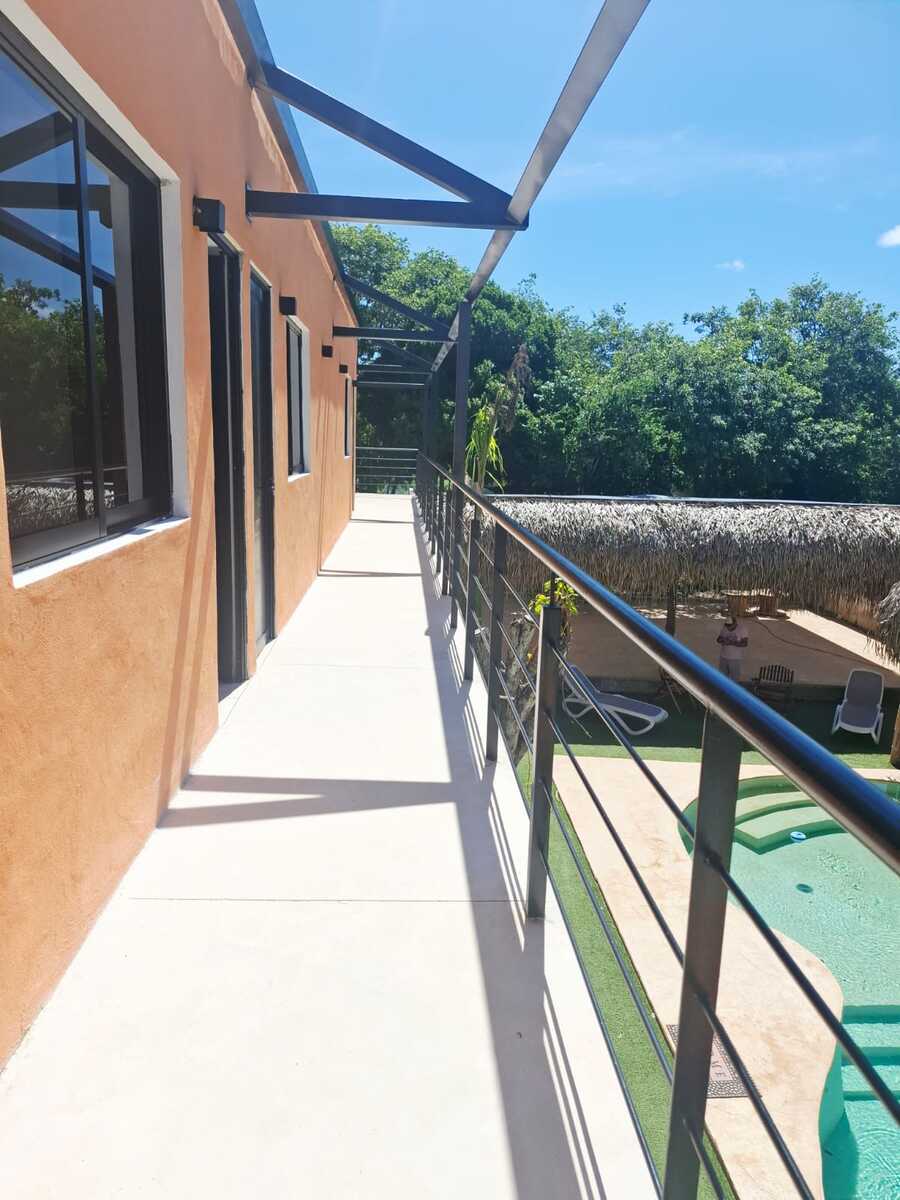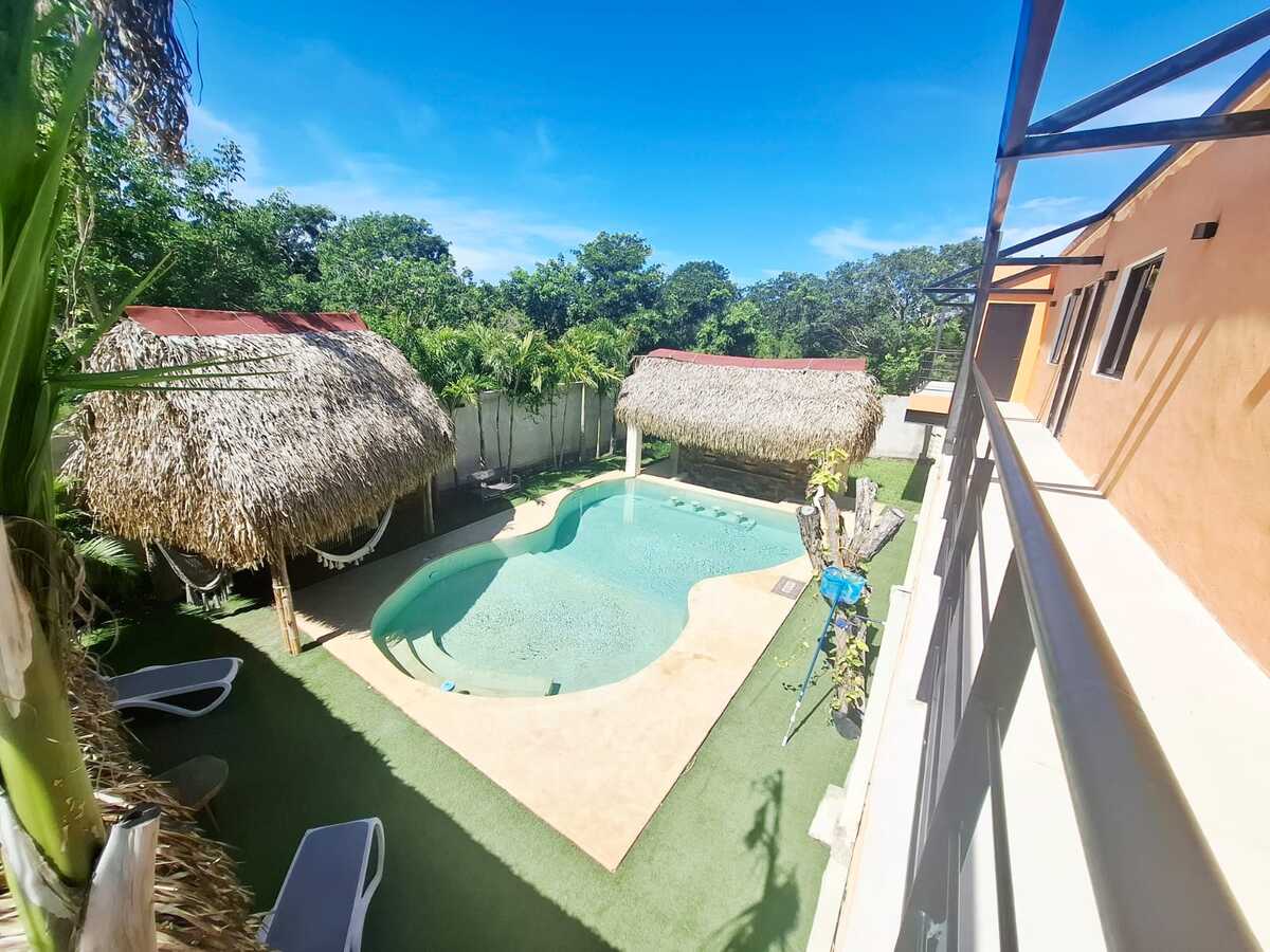 Hamacas en cuartos y área de alberca.