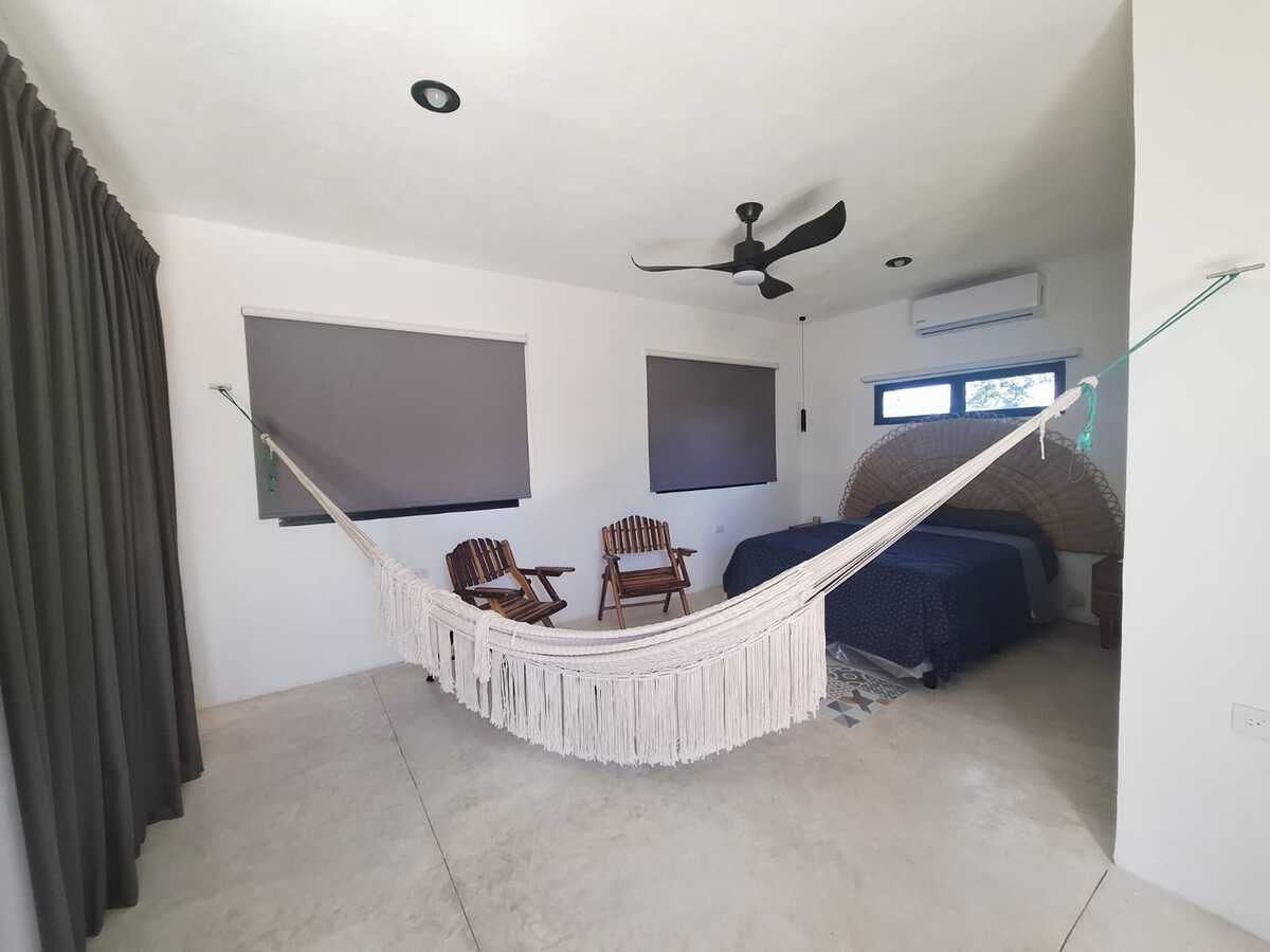 4 Habitaciones cada una con baño, aire acondicionado y ventilador. 3 Recamaras con cama matrimonial y la recámara principal cama King Size