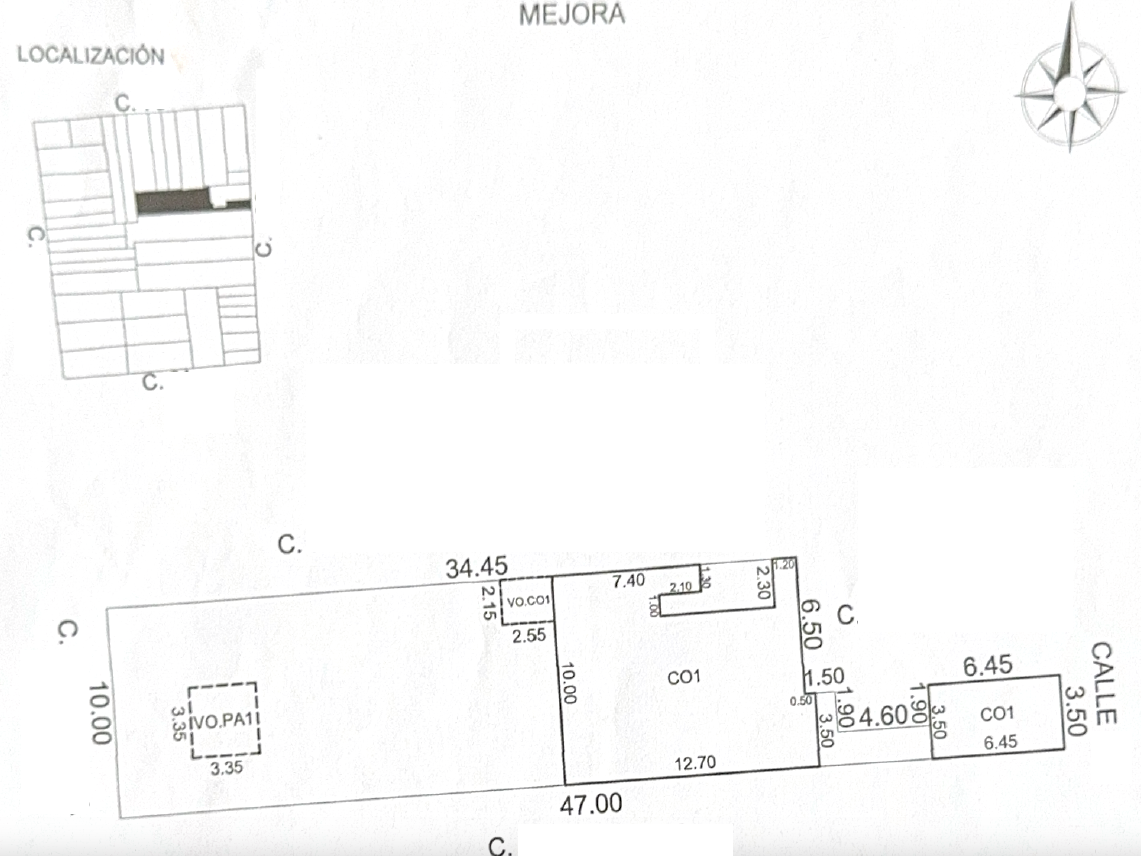 Terreno: 380m2 (terreno de forma irregular) 10m x 47m
