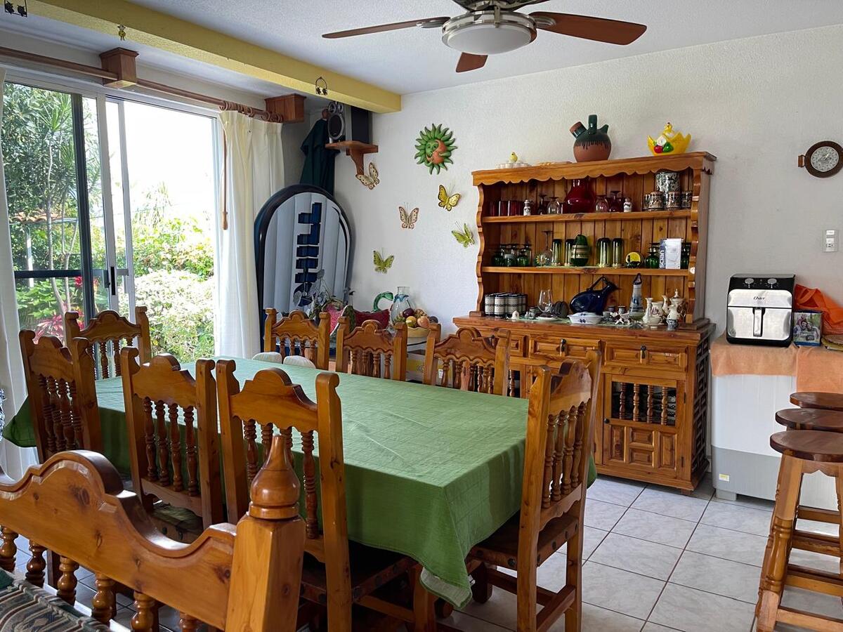 It has a living room with a fireplace, dining room with a fan, bar, integral kitchen, room for study or attached bedroom, stairs, 4 bedrooms with closets, the master bedroom has a balcony, 4 full bathrooms, 2 parking spaces, outdoor pool with solar heating, storage room.