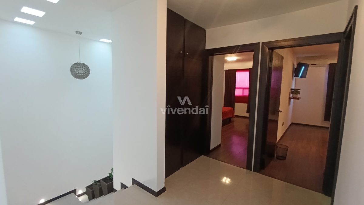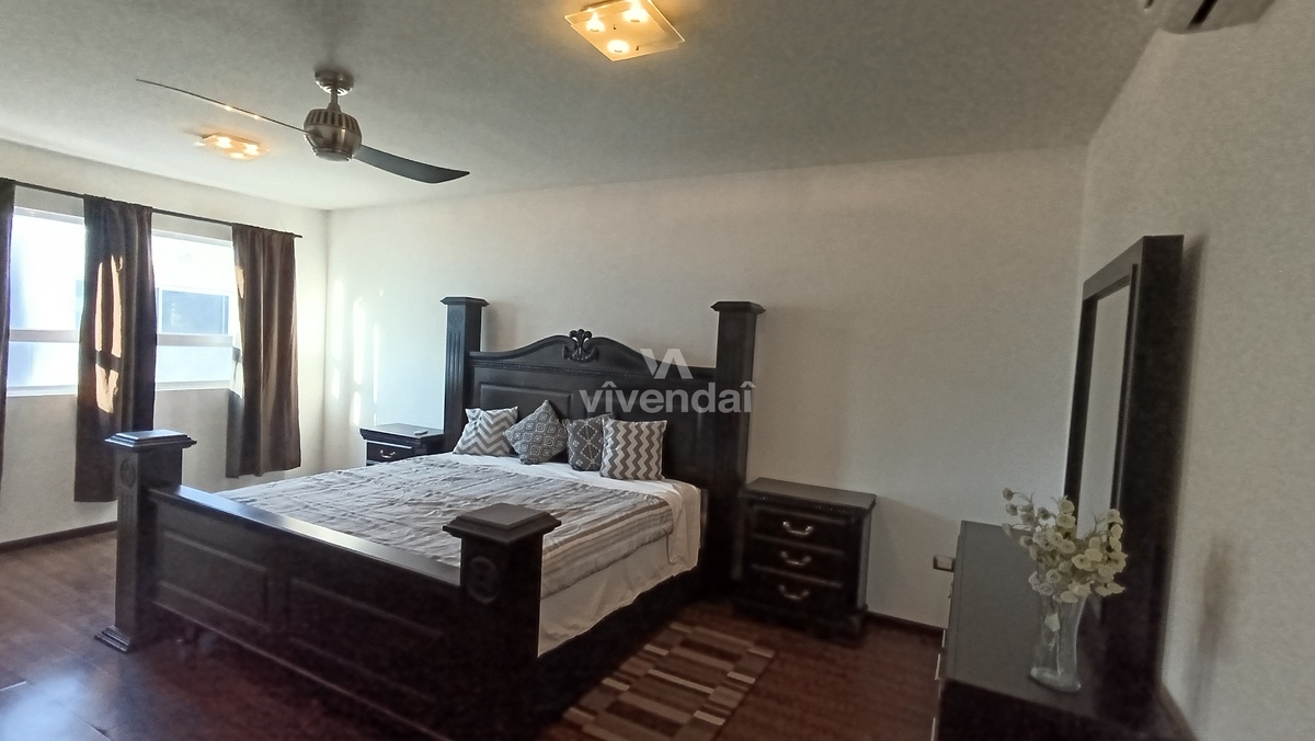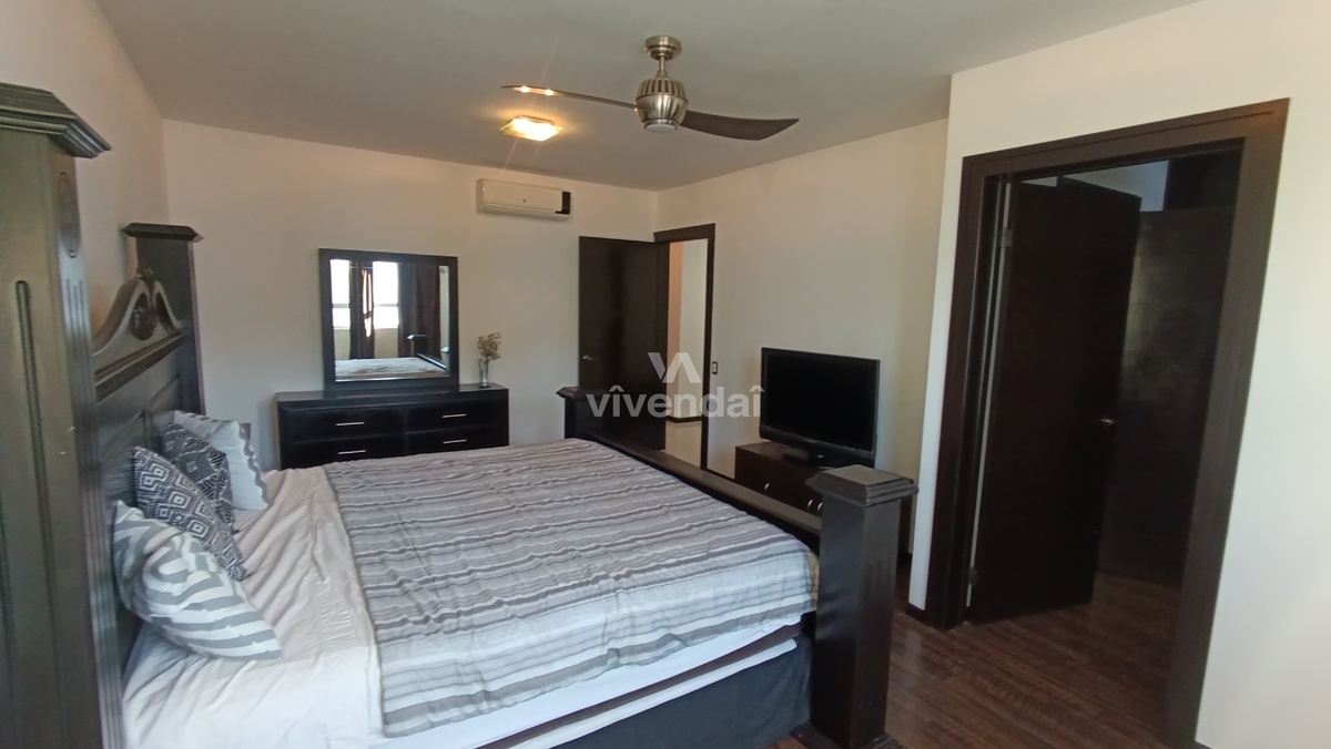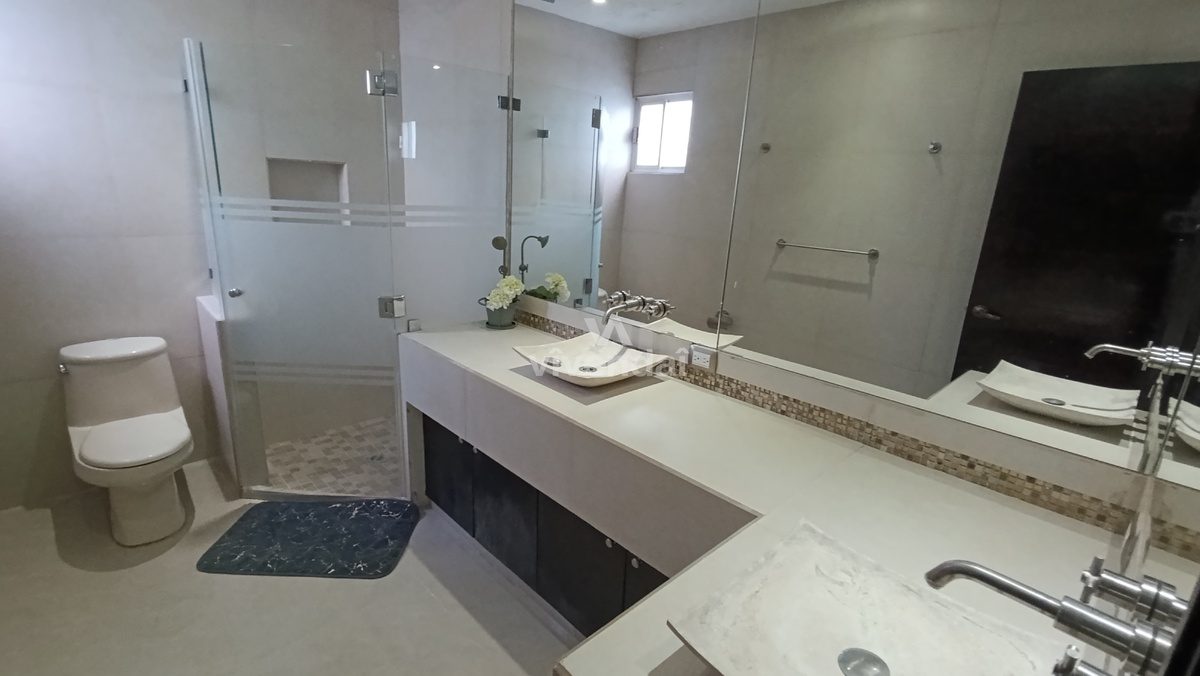 El acceso a planta alta, es por unas escaleras con detalles de iluminación indirecta, estancia de TV, 2 habitaciones secundarias, cada una con baño y mini spli y un espacioso baño compartido y la recámara principal, muy grande, con vestidor y baño completo con canceles de vidrio templado.