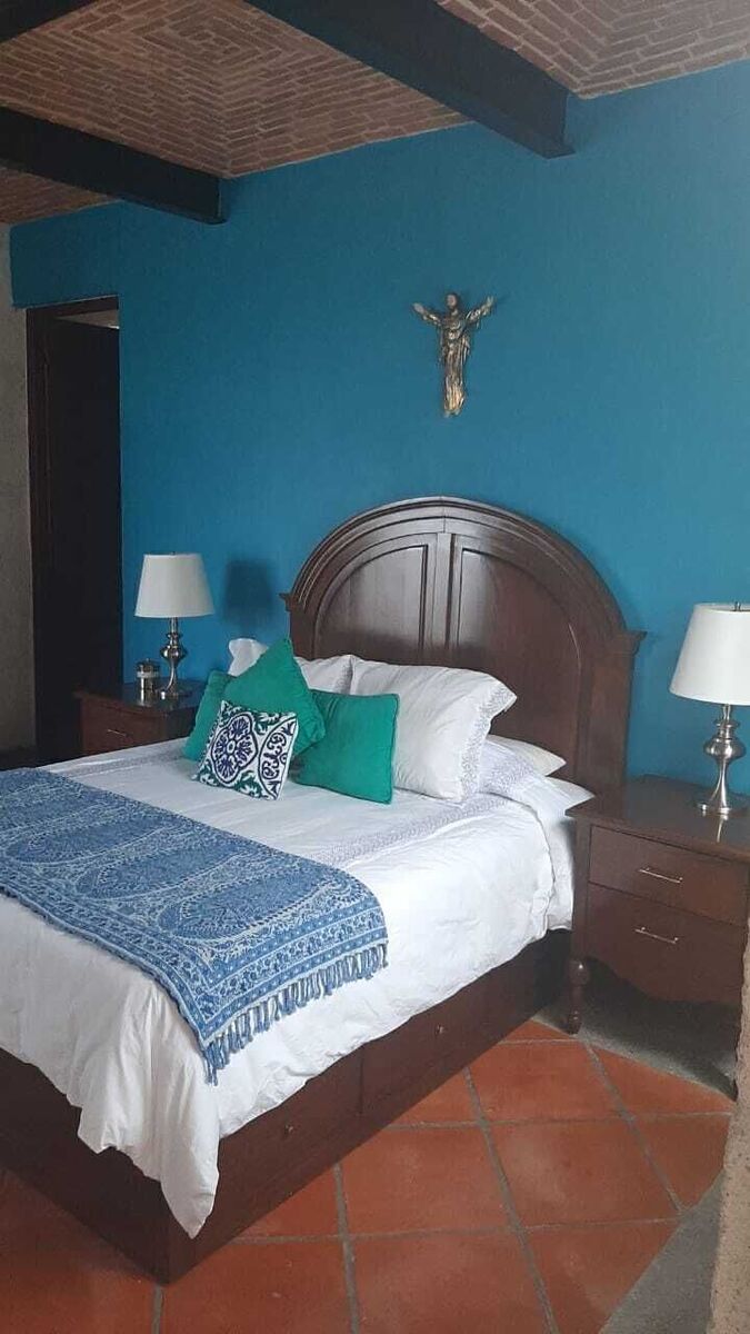 Excelente CASA amueblada, con mobiliario colonial de excelente calidad con bóvedas arquitectónicas material de primera en acabados y solo 10 años de antigüedad, realmente en excelente estado, con privacidad a la orilla de San Miguel a 14 min del centro y 5 min de plaza luciérnaga para la gente que busca tranquilidad y al mismo tiempo estar cerca de todo, con opción a crecer o hacer hotel boutique.
