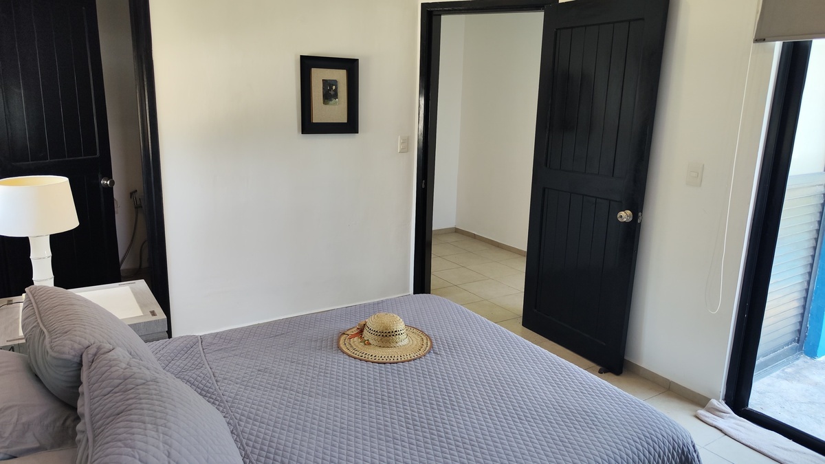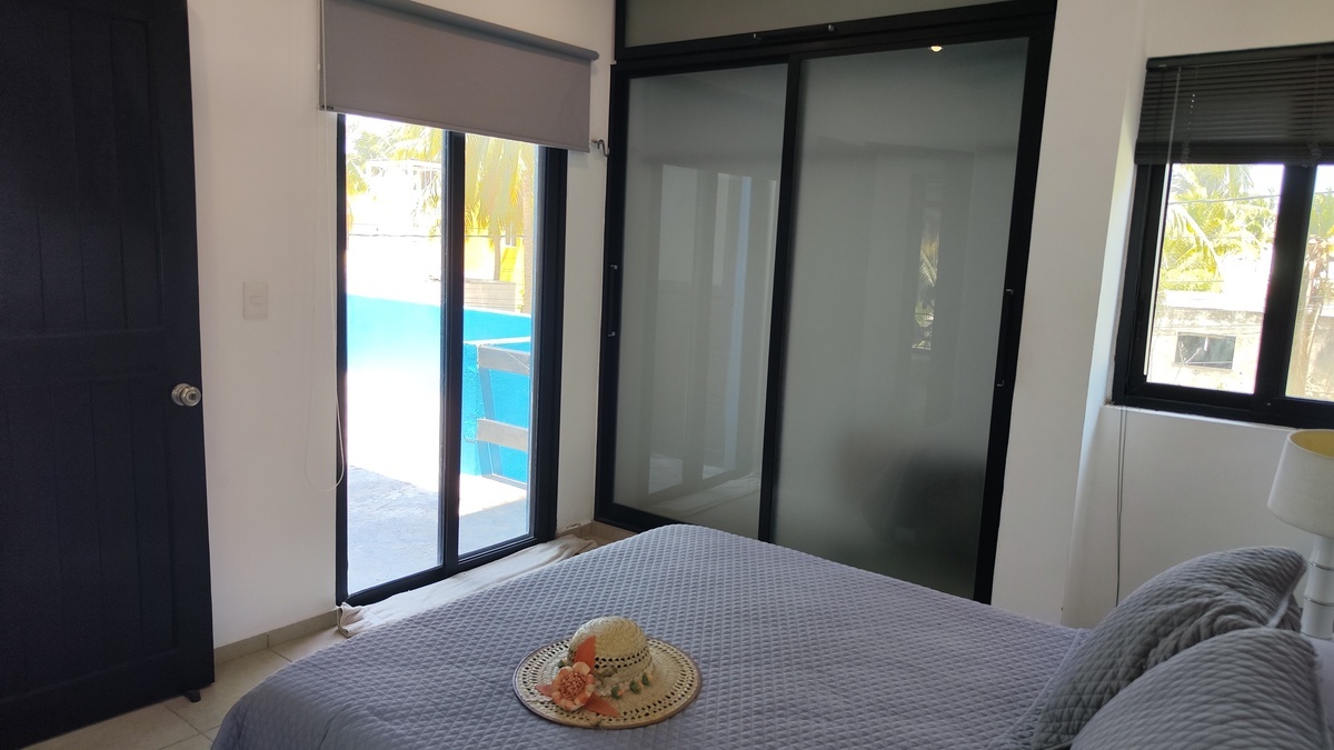 🌴 Recámara principal con vestidor, baño y balcón con palapa y vista a la piscina