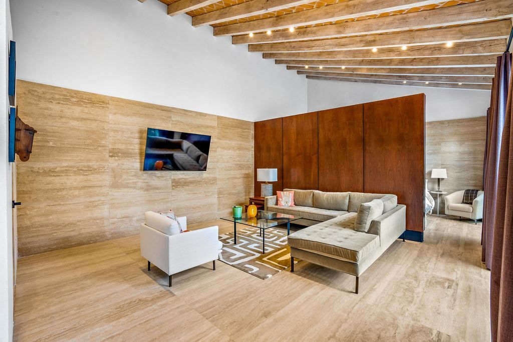 A lush garden and private patio create an intimate retreat within Centro. The property also includes a garage—a rare convenience—and a one-bedroom casita, perfect for guests or independent living.