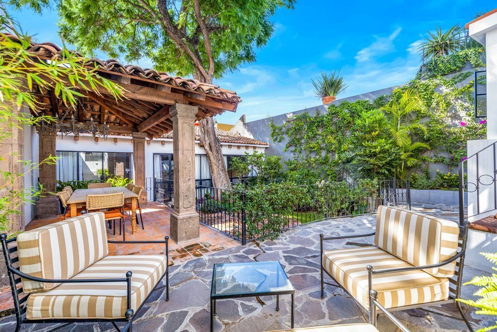 Los jardines privados y el patio interior ofrecen un refugio de tranquilidad en pleno Centro Histórico. La propiedad cuenta además con garaje —una rareza en esta zona— y una casita independiente de una recámara, perfecta para invitados o como espacio privado adicional.