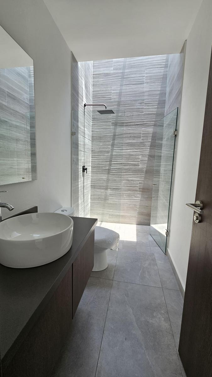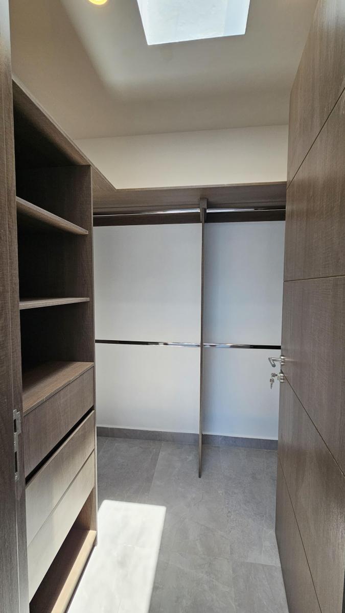 Planta alta: tres recámaras, la principal con baño y vestidor; las recámaras secundarias comparten un baño completo. Incluye clóset de blancos.