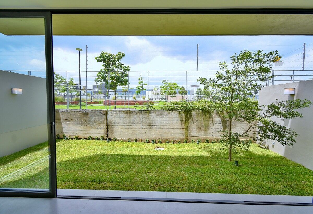 En planta baja, se encuentra una recamara o estudio con baño completo, ideal para visitas o para un espacio de trabajo tranquilo. Desde aquí puedes acceder a un jardín privado que tiene vista al parque, creando un ambiente relajante y verde.