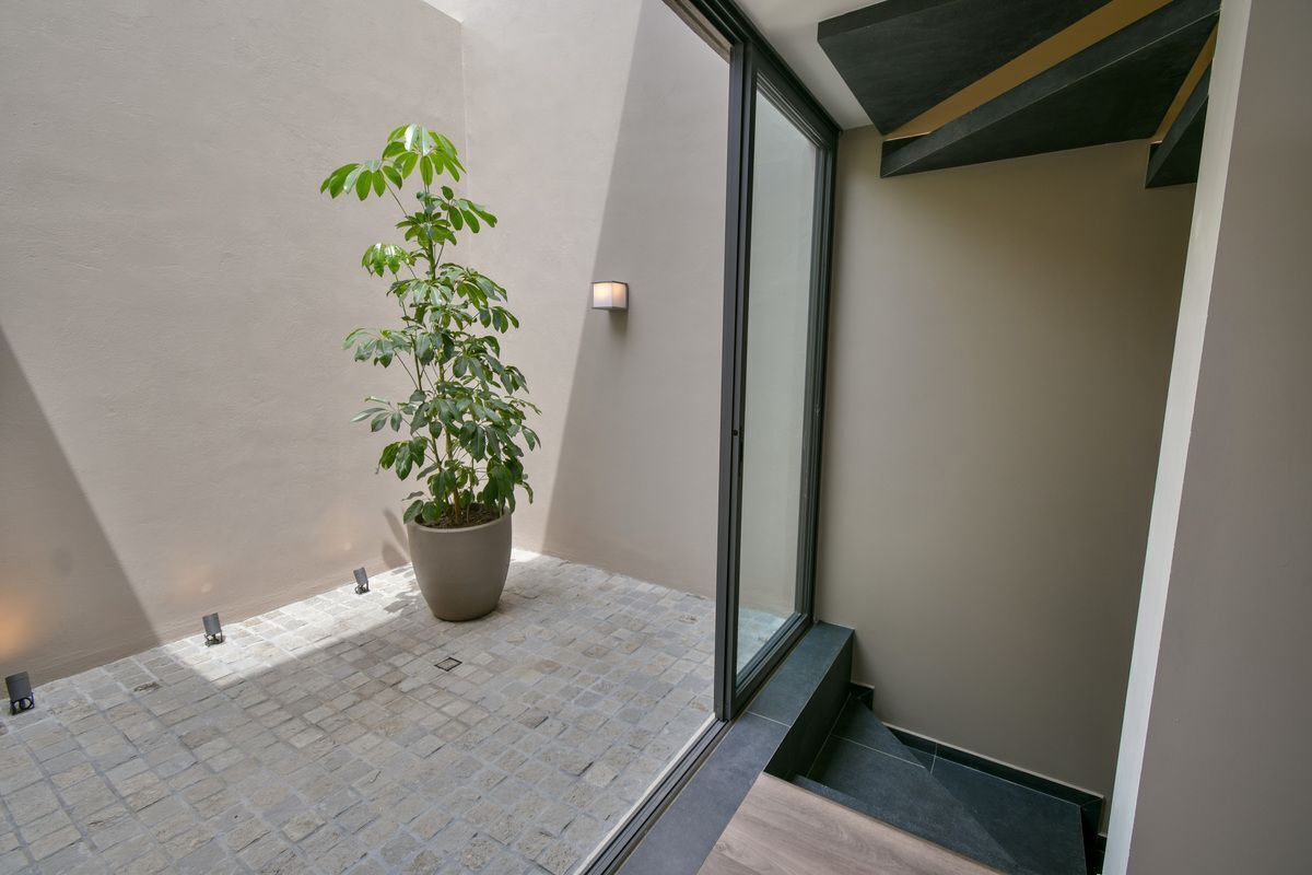 Subiendo al segundo piso, te encuentras con un patio de piedra que da ventilación e iluminación a este espacio.