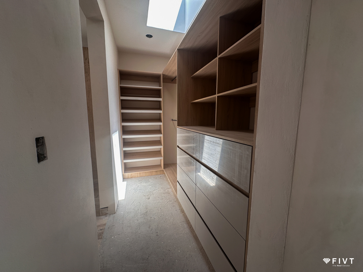 Master bedroom with walk-in closet and full bathroom with double shower, jacuzzi, and terrace