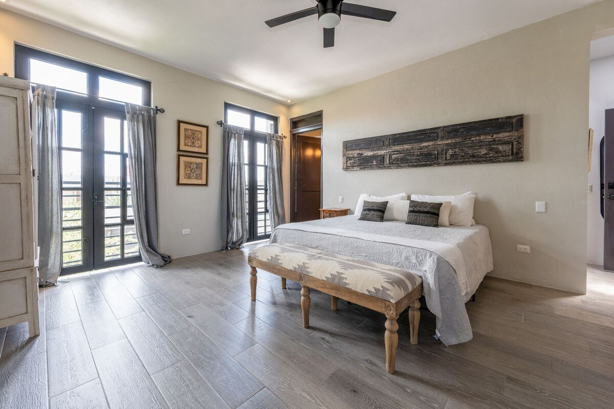 En la planta superior, dos espaciosas suites ofrecen baños privados y amplios armarios. La suite principal cuenta con una romántica chimenea Cantera, visible tanto desde la cama como desde la sala de estar, ideal para disfrutar de veladas acogedoras.