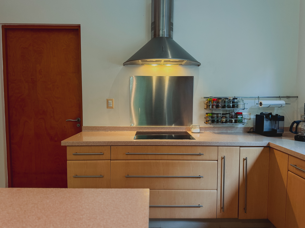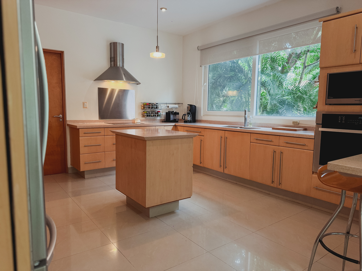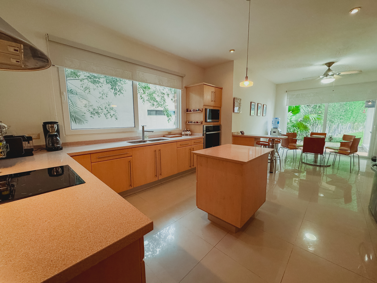 - Cocina con diseño europeo moderno y funcional, equipada con mesetas y barra desayunadora en Corian 👩🍳