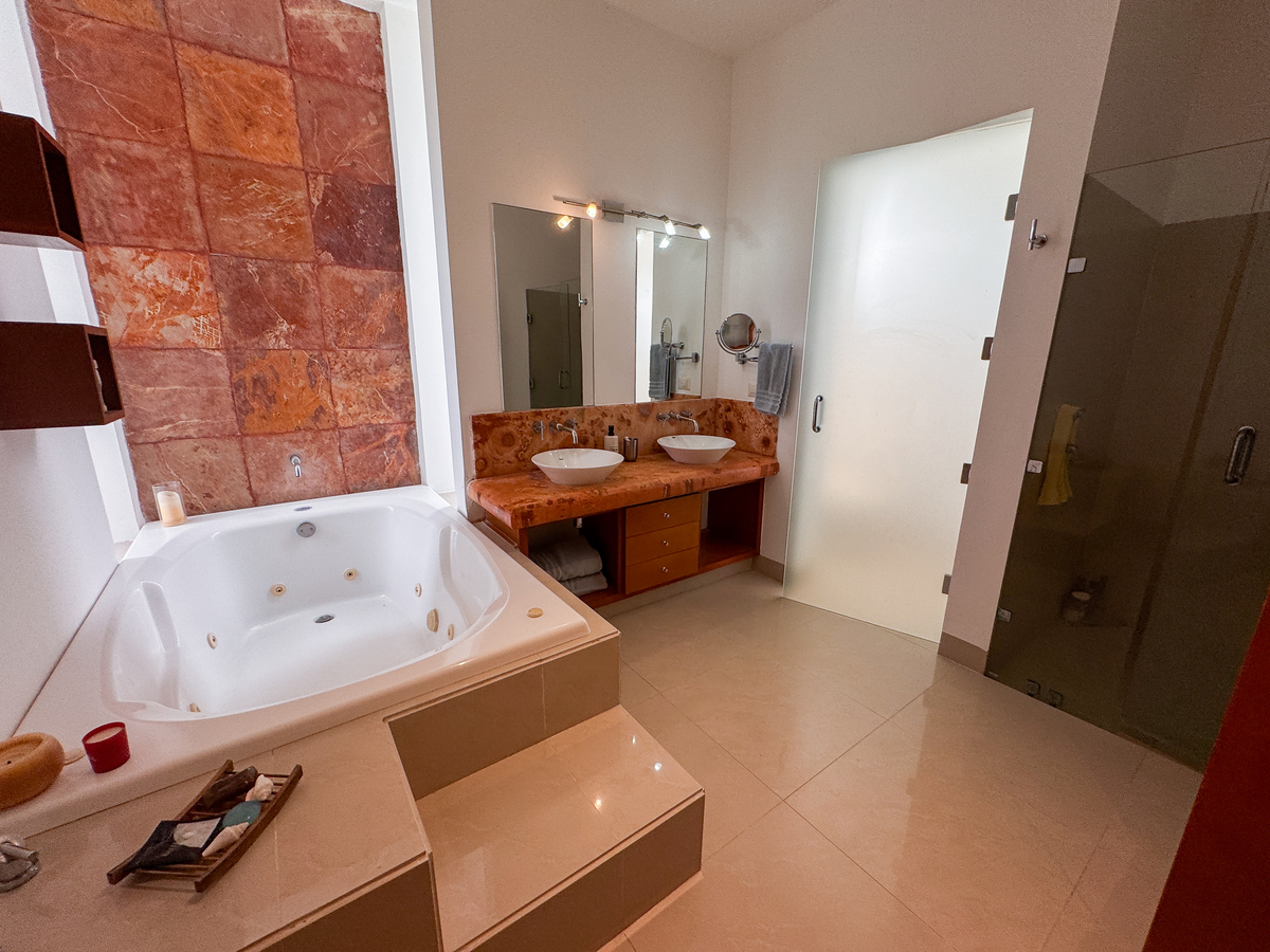 - Baño completo en recámara principal con tina de hidromasaje 🛀