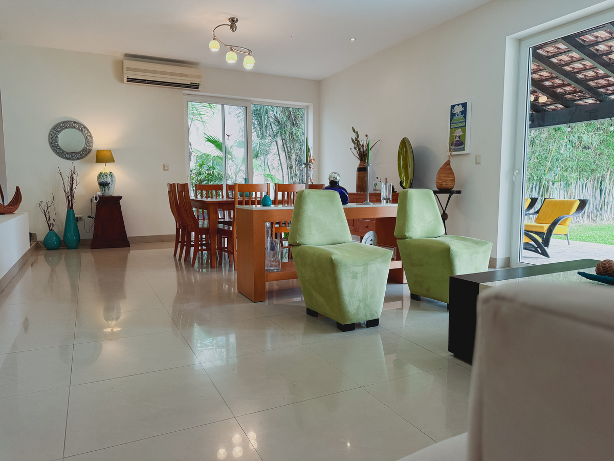 Con orientación Oriente - Poniente, óptima para ventilación e iluminación natural. ☀️💨 Con una transparencia natural desde el interior hacia el jardín posterior y con vista al campo de golf. ⛳🌳