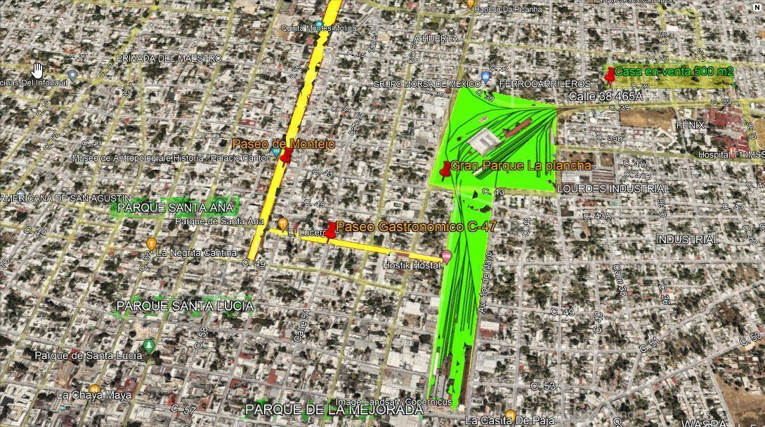 A 300 metros de esta casa, se encuentra el Gran parque de la plancha, espacio ideal para disfrutar de sus areas verdes, areas de juegos infantiles, andadores techados en todo el parque, lago artificial con mas de 13 mil metros cuadrados y malecón, así como de su mercado gastronomico, skatepark, parque de mascotas, gimnasio al aire libre, zonas deportivas y ciclopista, disfrute de los eventos en su auditorio para 10,000 personas, el museo de la luz y el museo del ferrocarril, también cuenta con la estación del iEtram que transporta a pasajeros que lleguen del Tren Maya. A solo un kilometro de agradable caminata a través del parque, podrá llegar a la calle 47 con su Paseo Gastronómico, que alberga los mejores restaurantes y bares de la ciudad, conectandose con el emblematico paseo Montejo, por ese recorrido inolvidable.