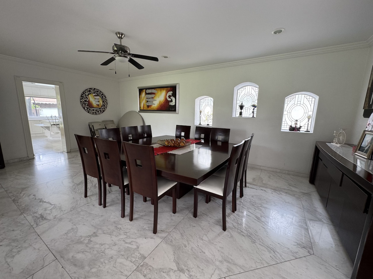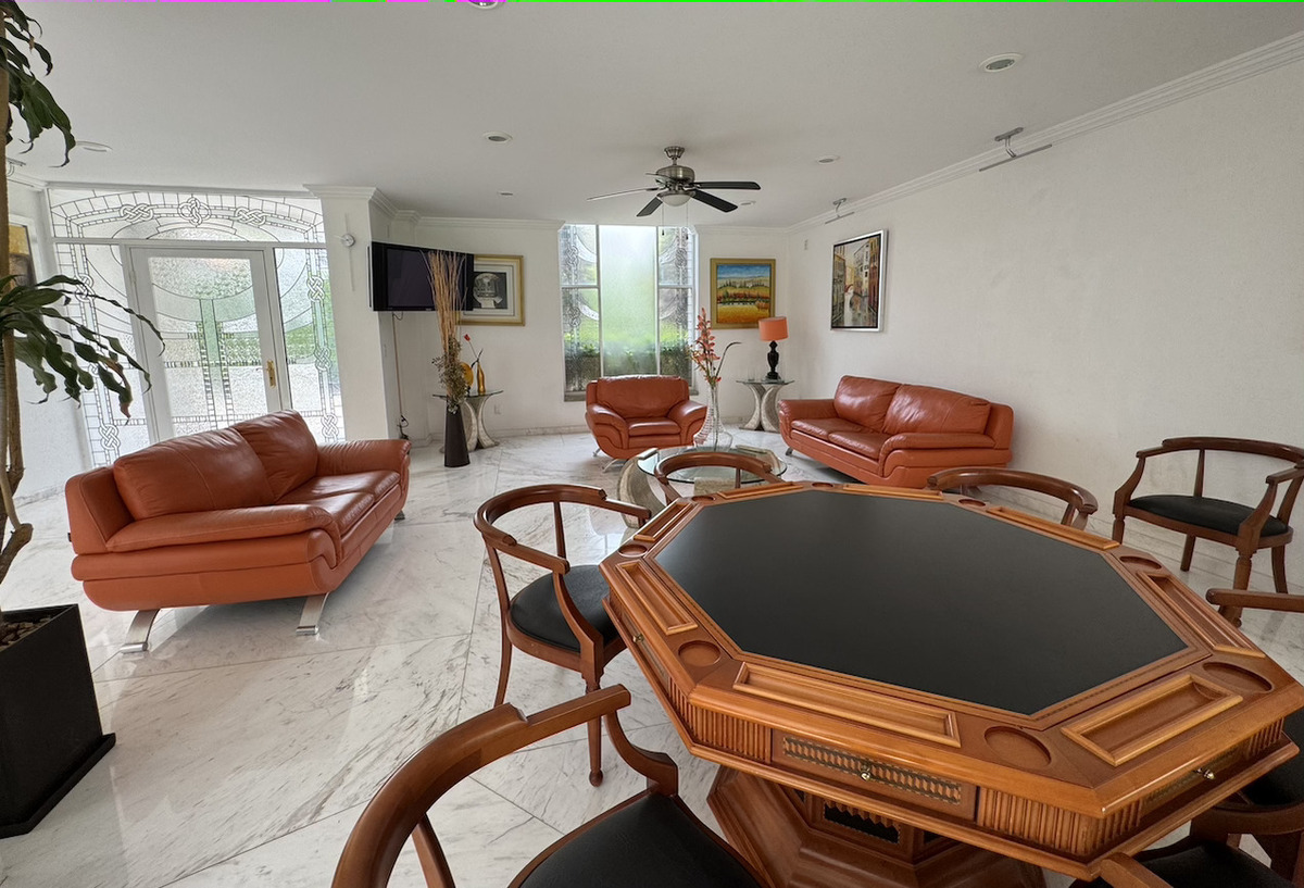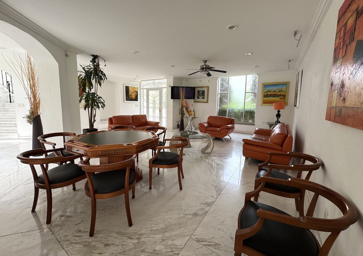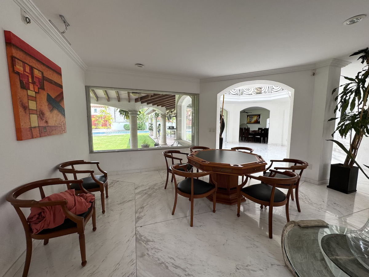 Sala y Comedor diseñadas gran amplitud, vista a la alberca y terraza. Zona de juegos en el área de la sala.
