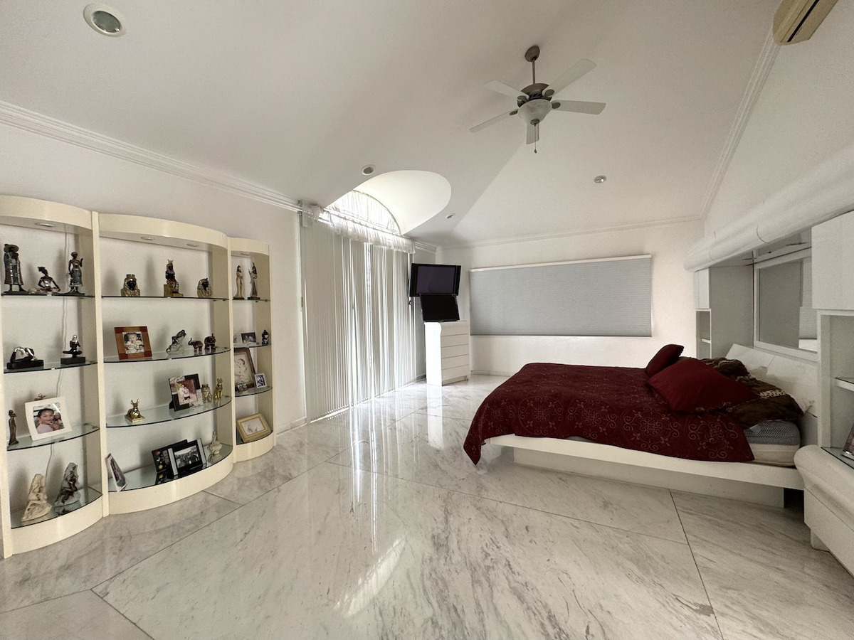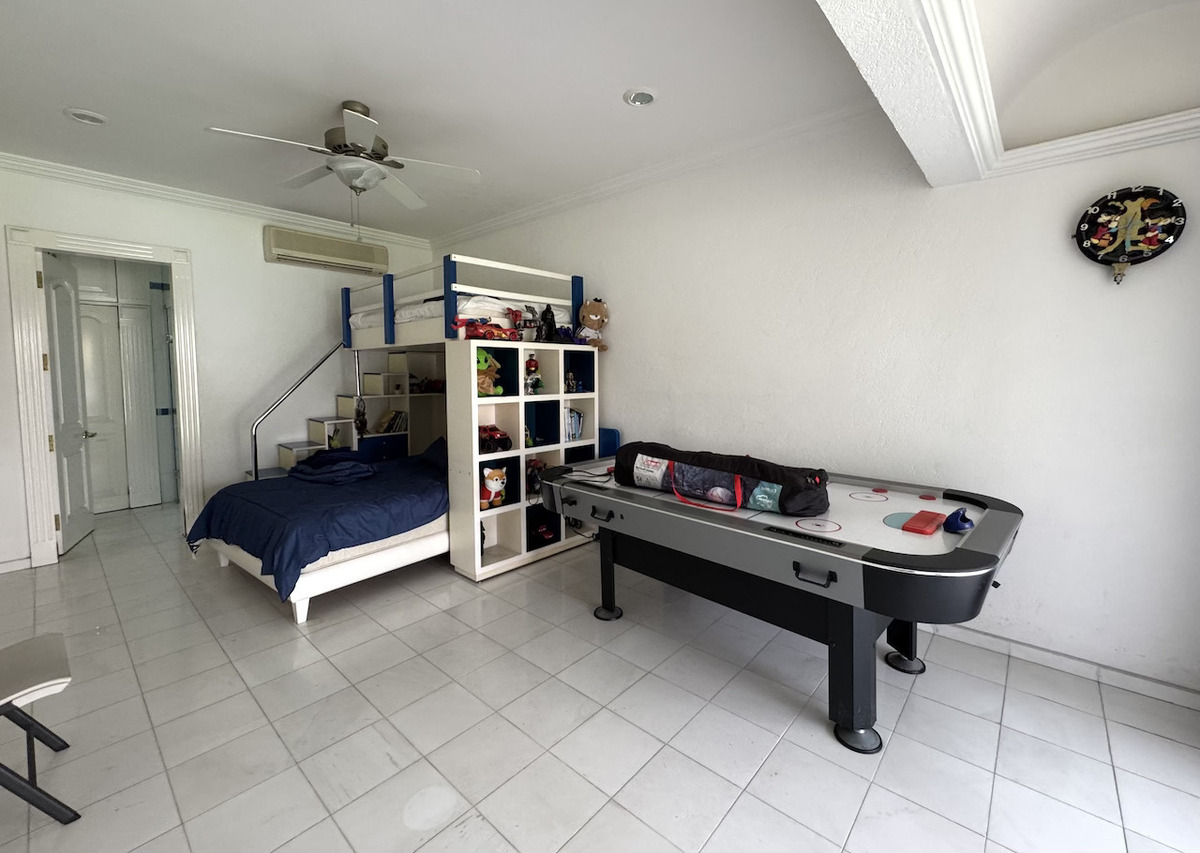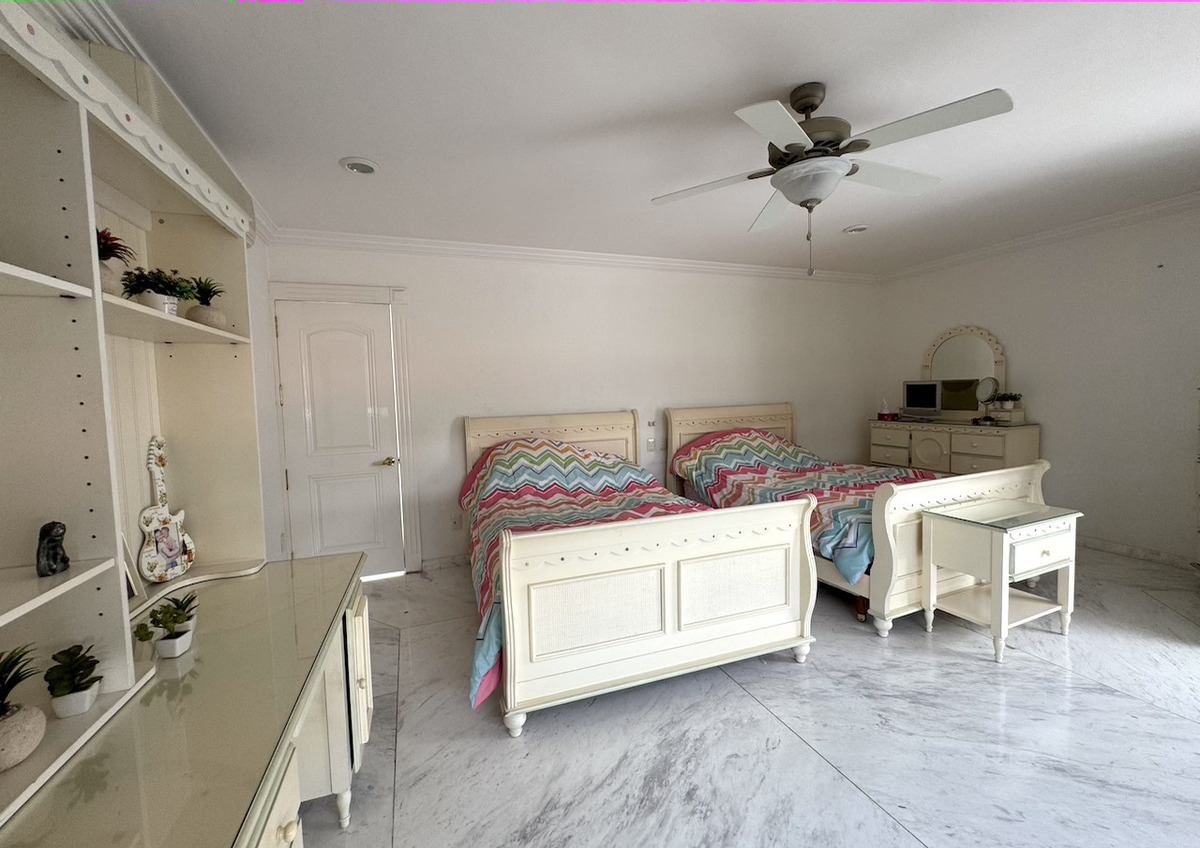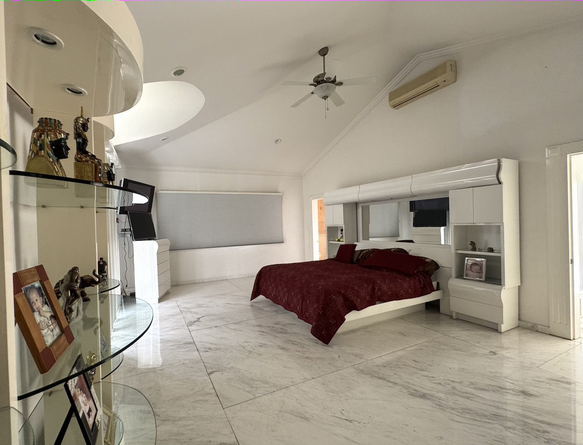 Esta gran propiedad cuenta con 6 Habitaciones, cada una con baño propio, vestidor, aire acondicionado y ventilador en techo cada una. 2 de las Habitaciones se encuentran ubicadas en planta baja, e igualmente con baño privado y aire acondicionado.
