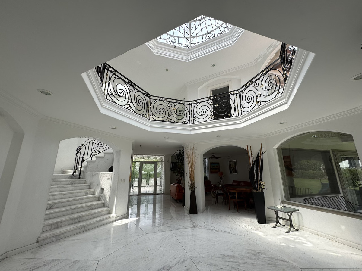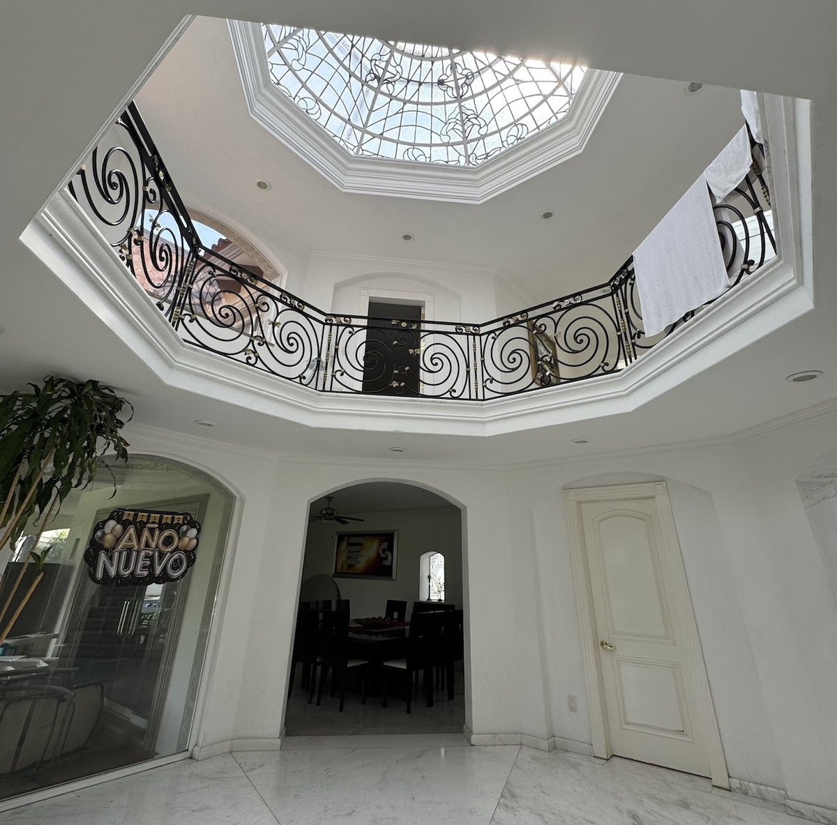 Al entrar a la casa encontrarás un hermoso e iluminado lobby que distribuye a todas las zonas de la casa con un bello domo que ilumina toda esa zona.