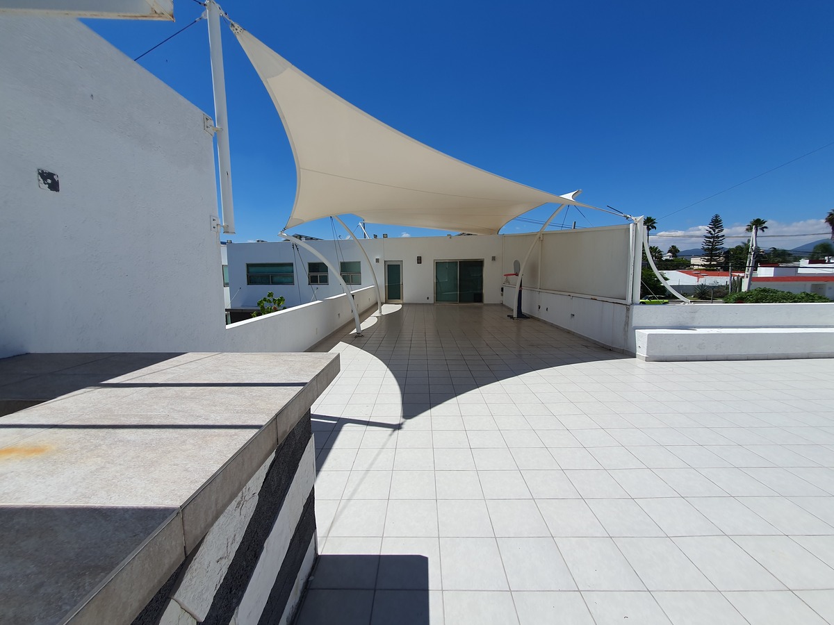 2 RECAMARAS CON TERRAZA CADA UNA Y CON BAÑO COMPLETO MUY AMPLIAS, TERRAZA ENORME PARA EVENTOS CON BARRA Y MEDIO BAÑO TECHADA CON MAYA EN ALGUNA AREAS PARA CUBRIR DEL SOL.