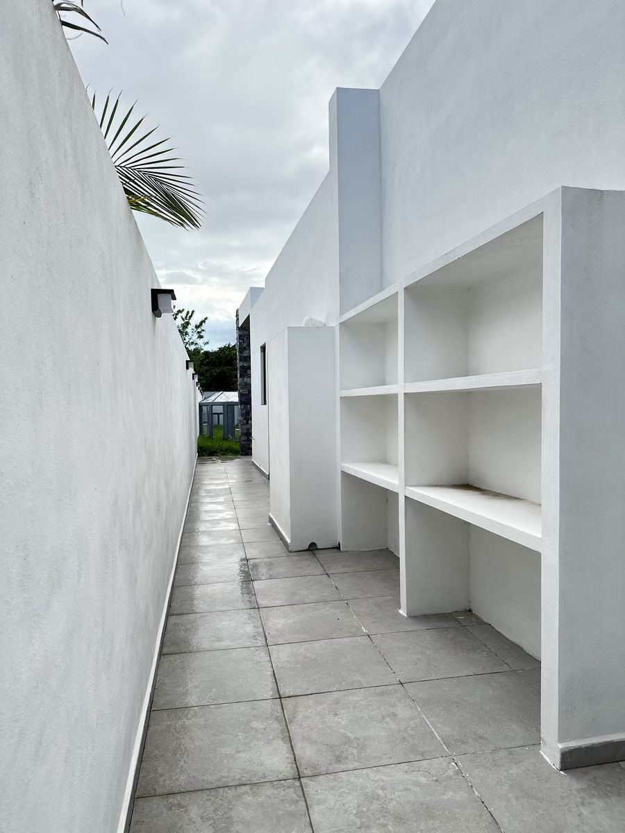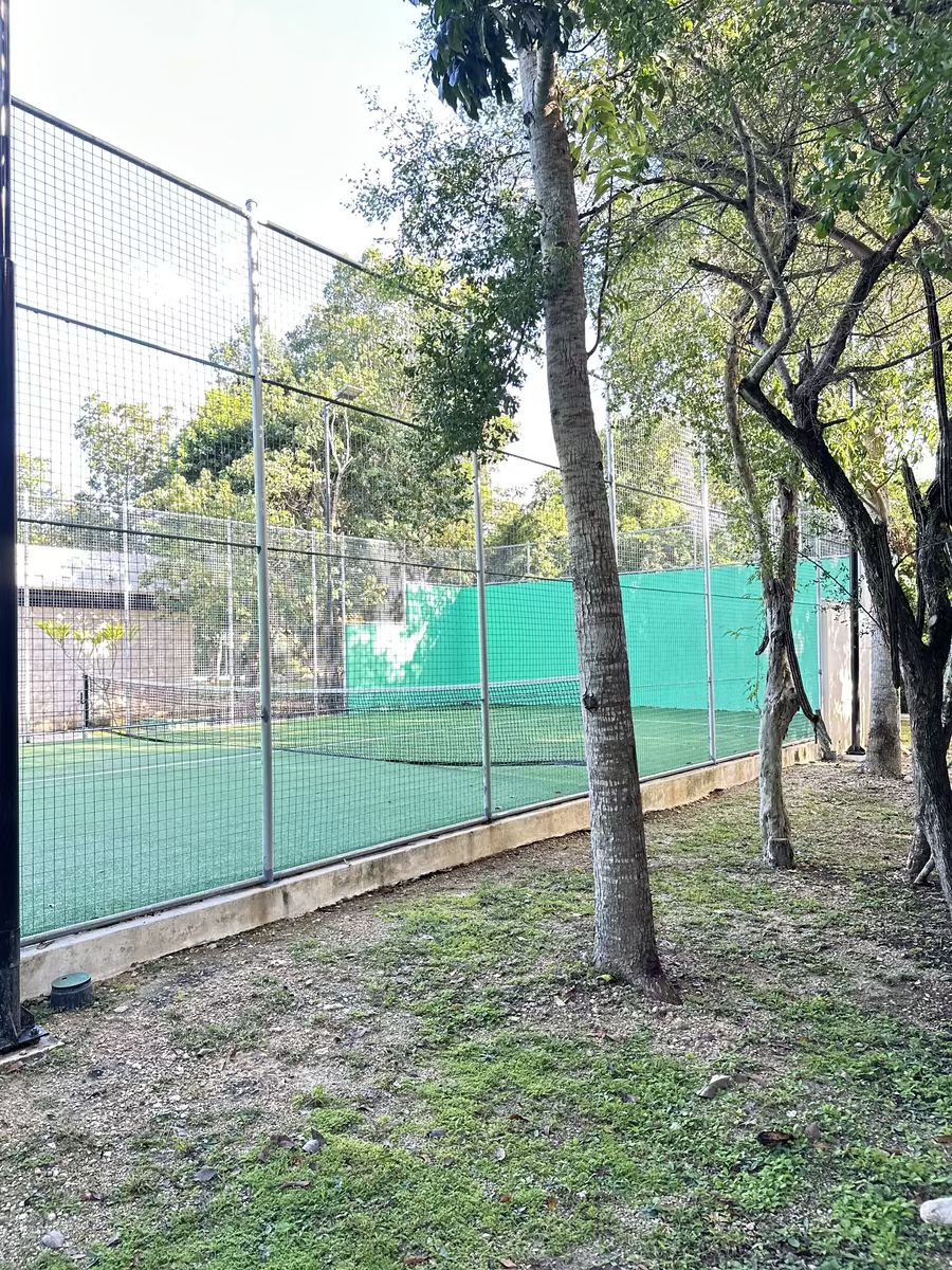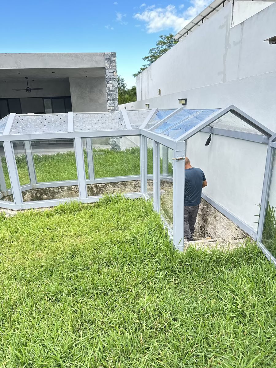 Jardín alrededor de la alberca y junto al cenote, pasillo de servicio con área de almacenamiento que se puede cerrar tipo closet.