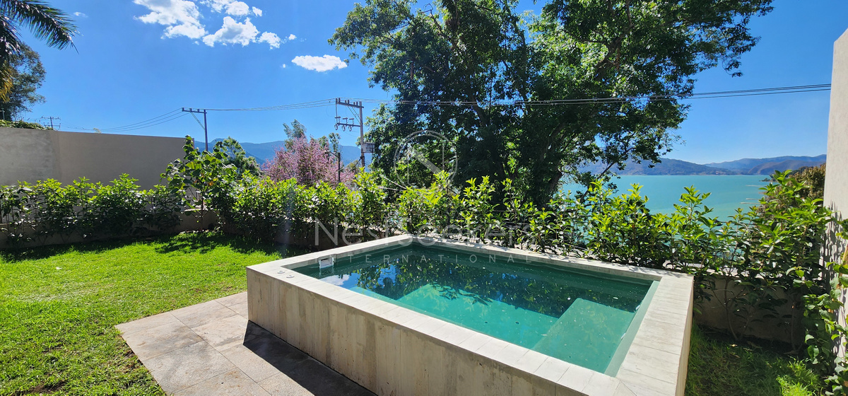 HOUSE FOR SALE WITH EXCELLENT VIEW: New modern-style house with excellent taste and details, with generous and well-lit spaces. In a privileged location in the heart of Valle de Bravo, allowing you to walk to the pier, the center of Valle, or the marinas in the area if you enjoy water sports. Discover this great project, which allows you to enjoy several social areas such as: its charming garden, covered terrace, and jacuzzi with a pleasant view of the lake and the Peña, its living and dining area that integrates with the terrace and garden area. And finally, the game room with a full bathroom that, due to its spaciousness, allows you to carry out activities with family or friends and have incredible moments.