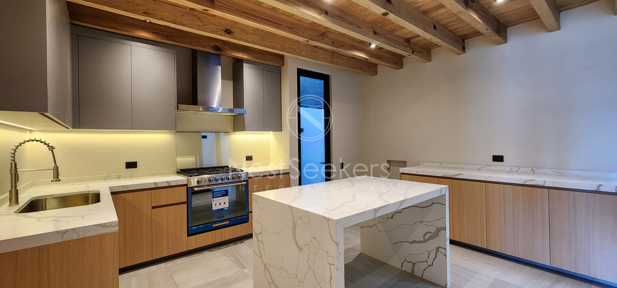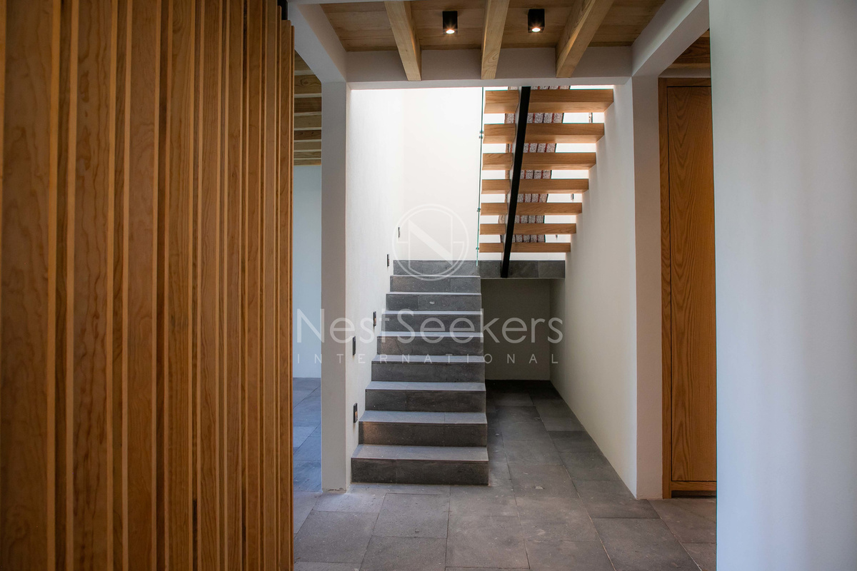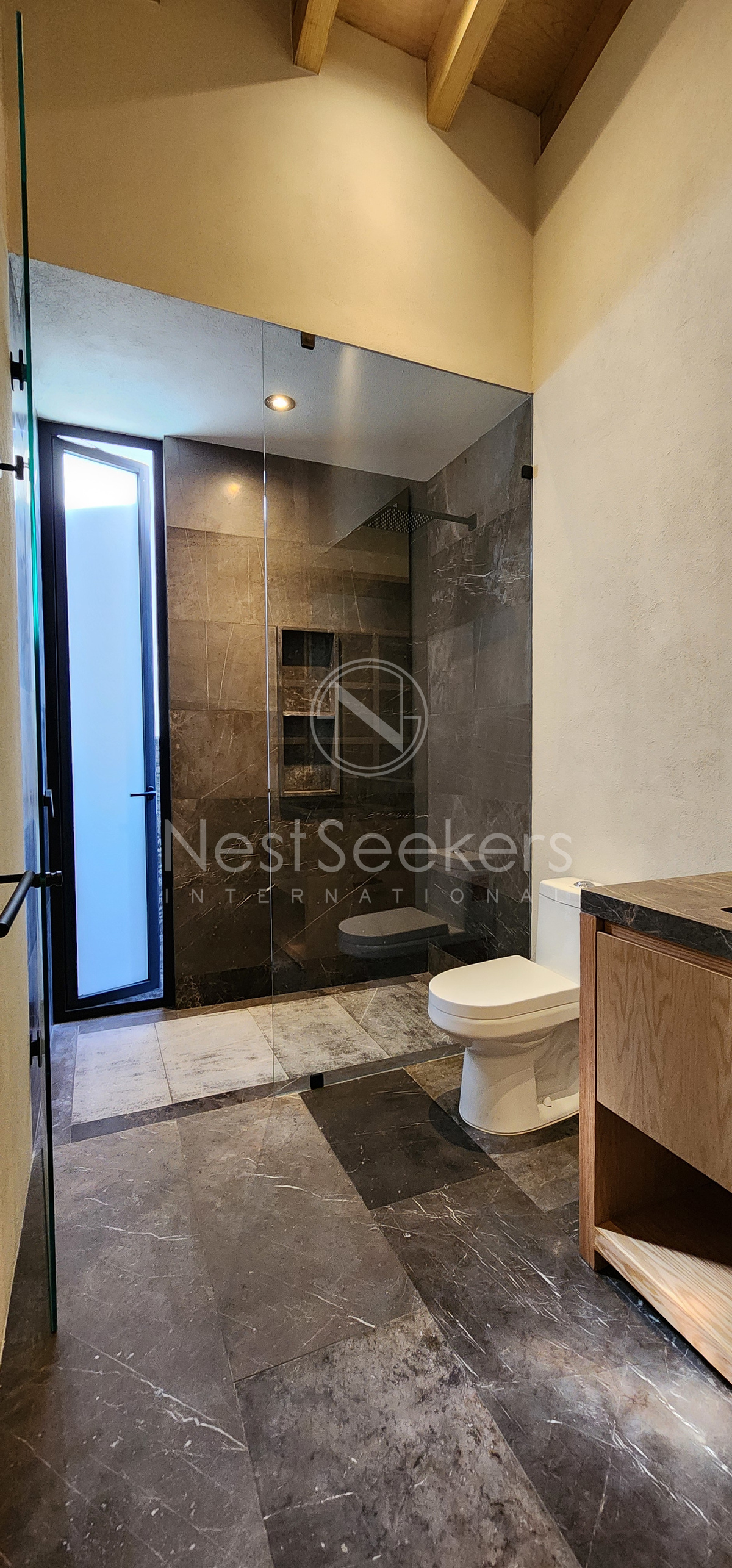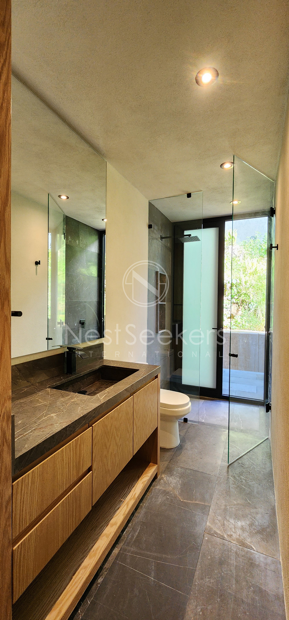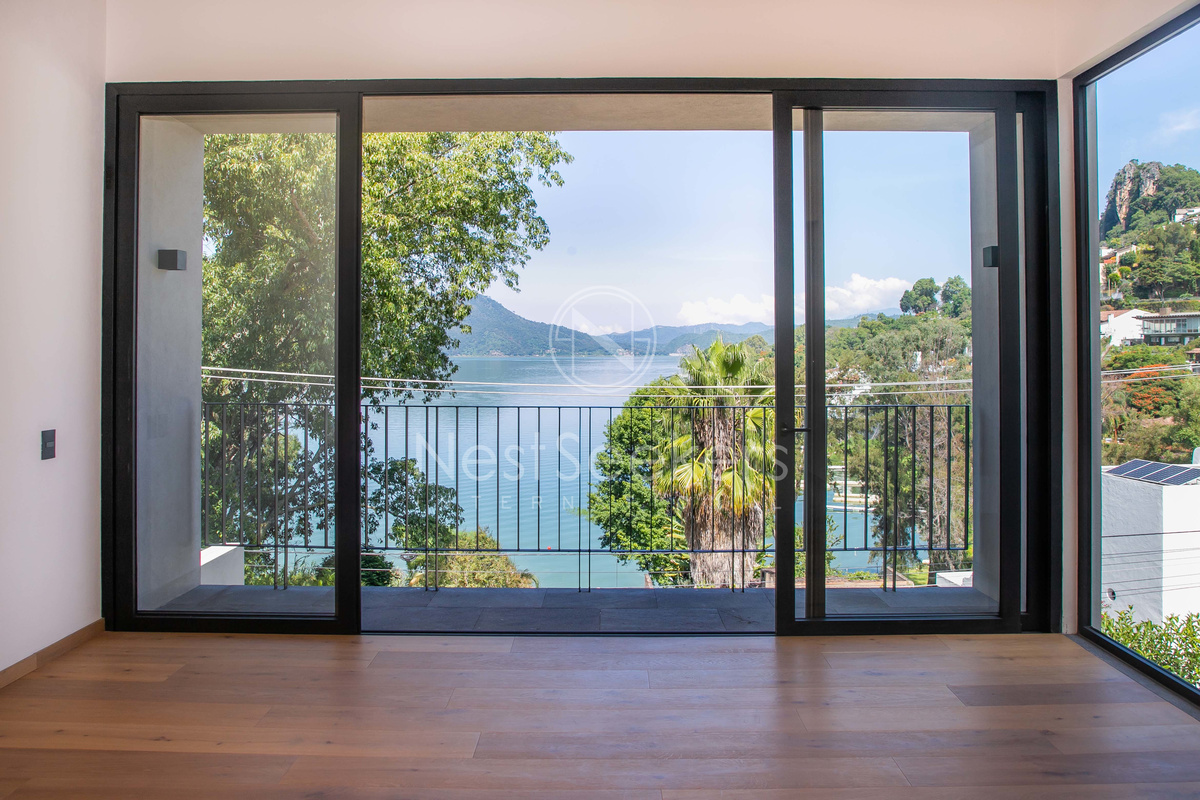 On the third level, you find the private area of the house, with four spacious and cozy bedrooms and a TV room. Each bedroom with a full bathroom, two of them with a balcony with pleasant views, one to a green area and one to the lake. The master bedroom also has a balcony with an incredible view of the lake, and a spacious bathroom with a dressing room and double sink. Simply an ideal house to spend very pleasant days with family, as it combines comfort, sophistication, and quality in its design and construction.CASA EN VENTA CON EXCELENTE VISTA: Casa nueva de estilo moderno y de excelente gusto y detalles, de espacios generosos e iluminados. En una ubicación privilegiada en el corazón de Valle de Bravo, que te permite salir a caminar al embarcadero, al centro de Valle o a las marinas de la zona, si disfrutas de los deportes acuáticos. Descubre este gran proyecto, que te permite disfrutar varias áreas sociales como son: Su encantador jardín, terraza techada y jacuzzi con agradable vista al lago y a la Peña, su área de sala y comedor que se integra a la zona de terraza y jardín. Y finalmente, el cuarto de juegos con baño completo que, por su amplitud, te permite realizar actividades en familia o con los amigos y pasar momentos increíbles.