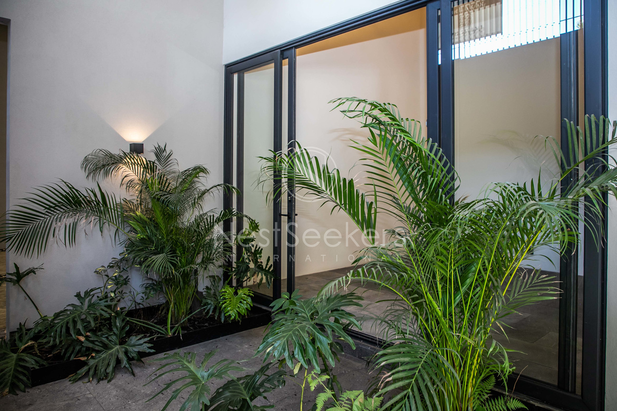 En el segundo nivel, encuentras una hermosa y amplia cocina con alacena, cuarto de lavado, cuarto de servicio con baño. Y al frente sala, comedor, terraza y jardín con jacuzzi.