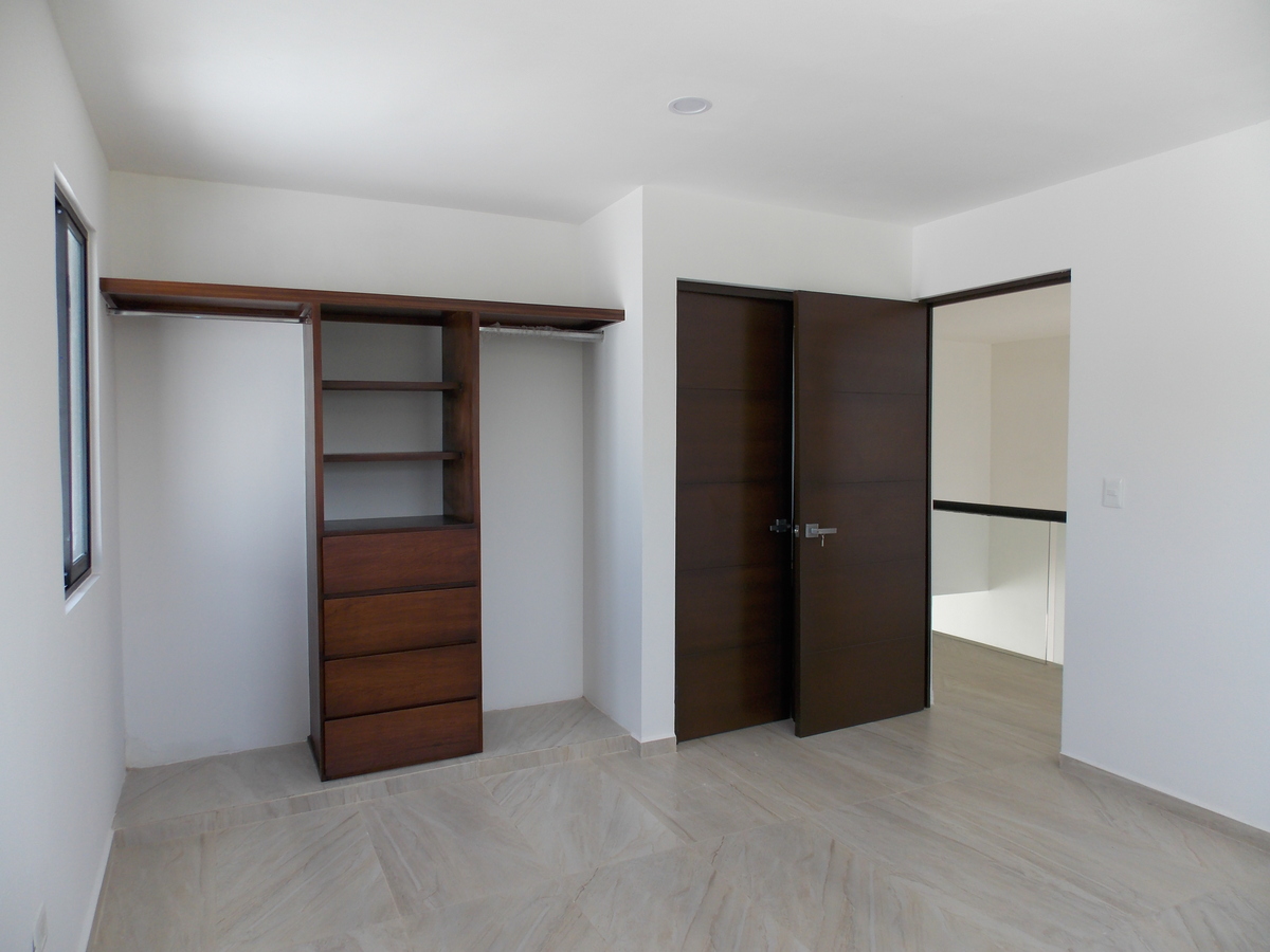Recámara principal con baño completo (incluye cancel), closet vestidor de madera y doble lavabo