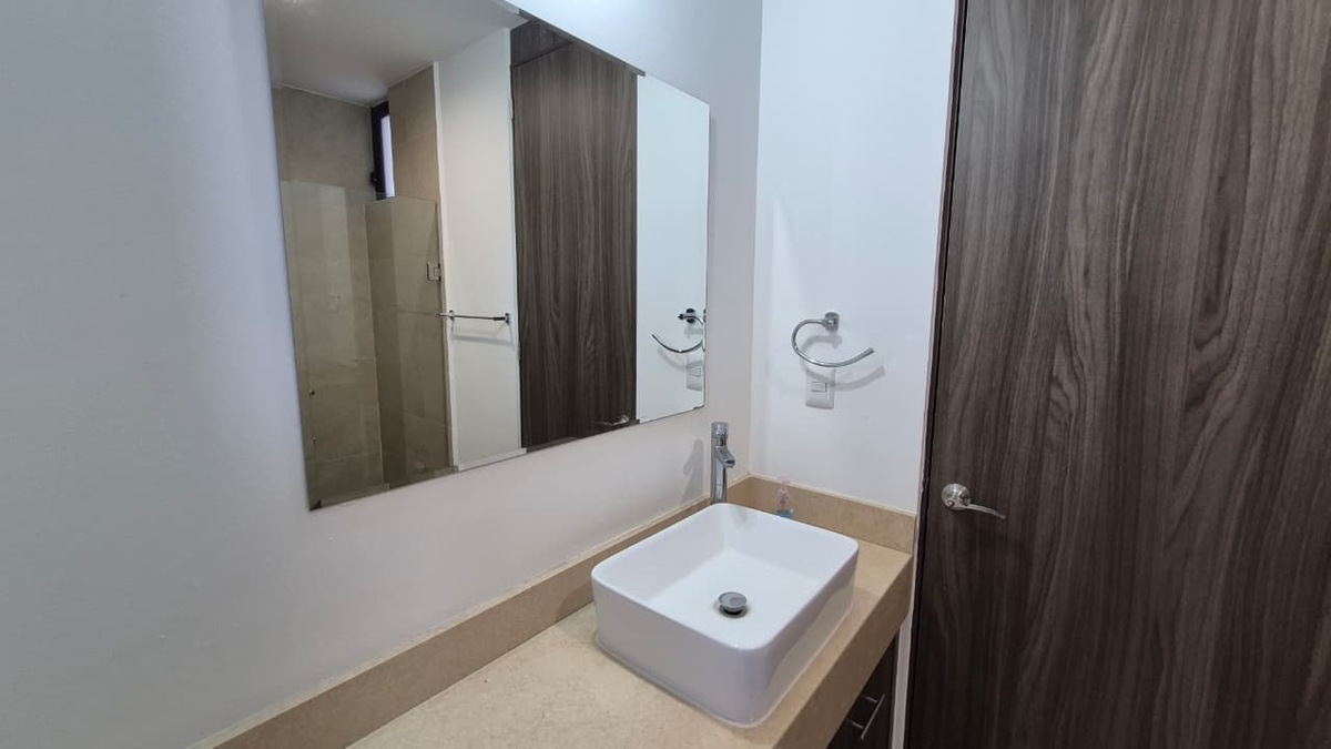 Casa de 2 niveles con diseño contemporáneo y espacios bien distribuidos. Cuenta con estudio, ideal para home office. La planta baja ofrece sala-comedor integrados, cocina integral equipada y área de lavado techada, además de una recámara adicional con baño completo. En la planta alta se encuentran las 2 recámaras restantes, la principal con baño propio, y un baño completo adicional.