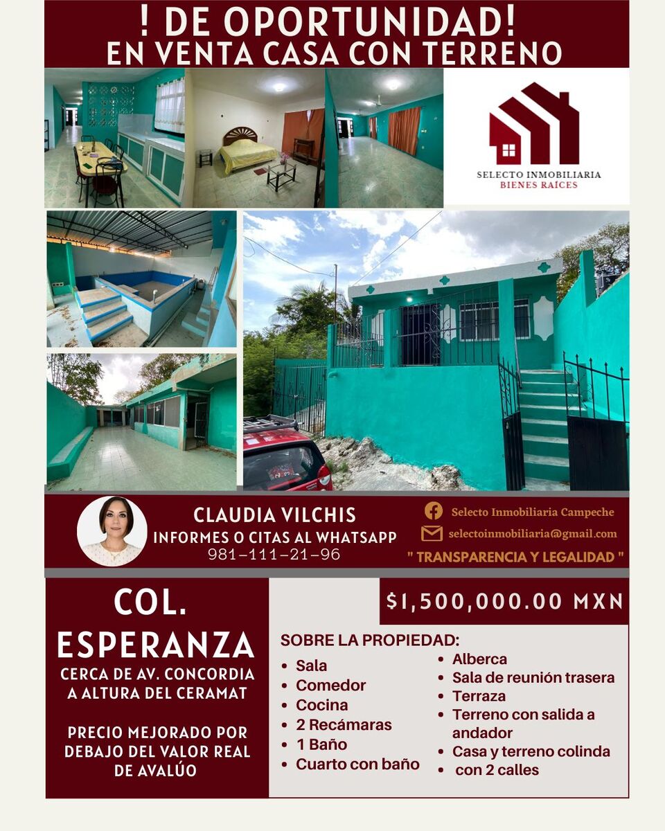 HOUSE WITH LAND IN COL. ESPERANZA 🏠 CAMPECHE, CAPITAL 🇲🇽 IMPROVED PRICE THATCASA CON TERRENO EN COL. ESPERANZA 🏠 CAMPECHE, CAPITAL 🇲🇽 PRECIO MEJORADO QUE