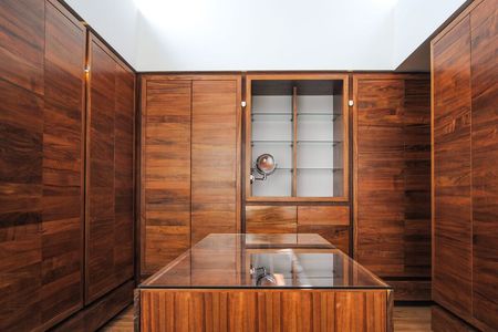Three bedrooms, the master bedroom with bathroom, dressing room, and balcony with a view of the garden, second bedroom with bathroom, dressing room, and loft, third bedroom with closet and bathroom outside, also has a linen closet.