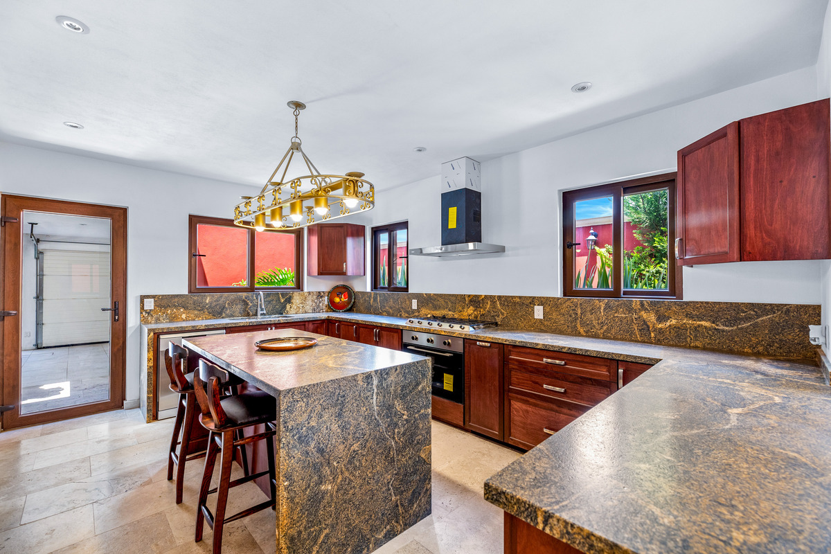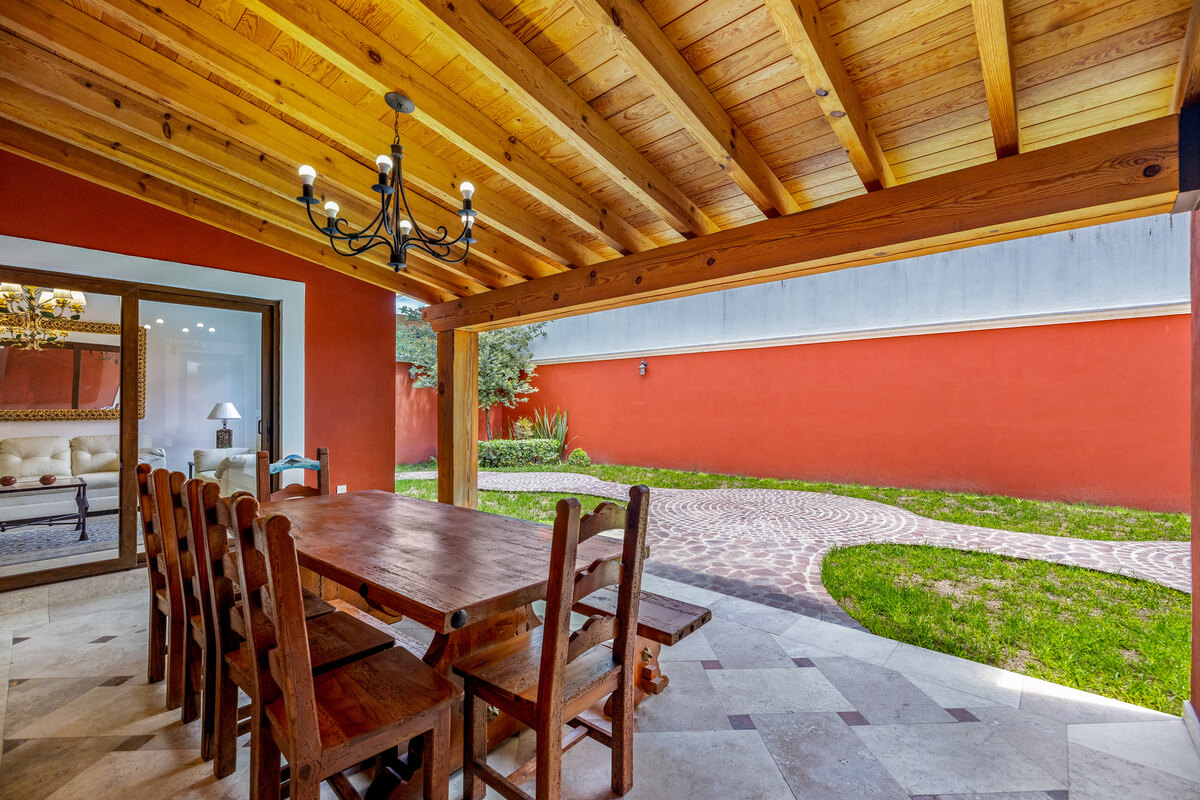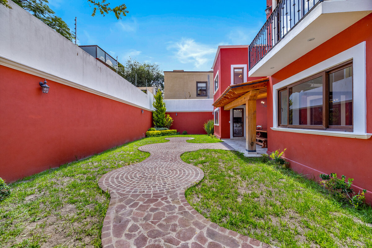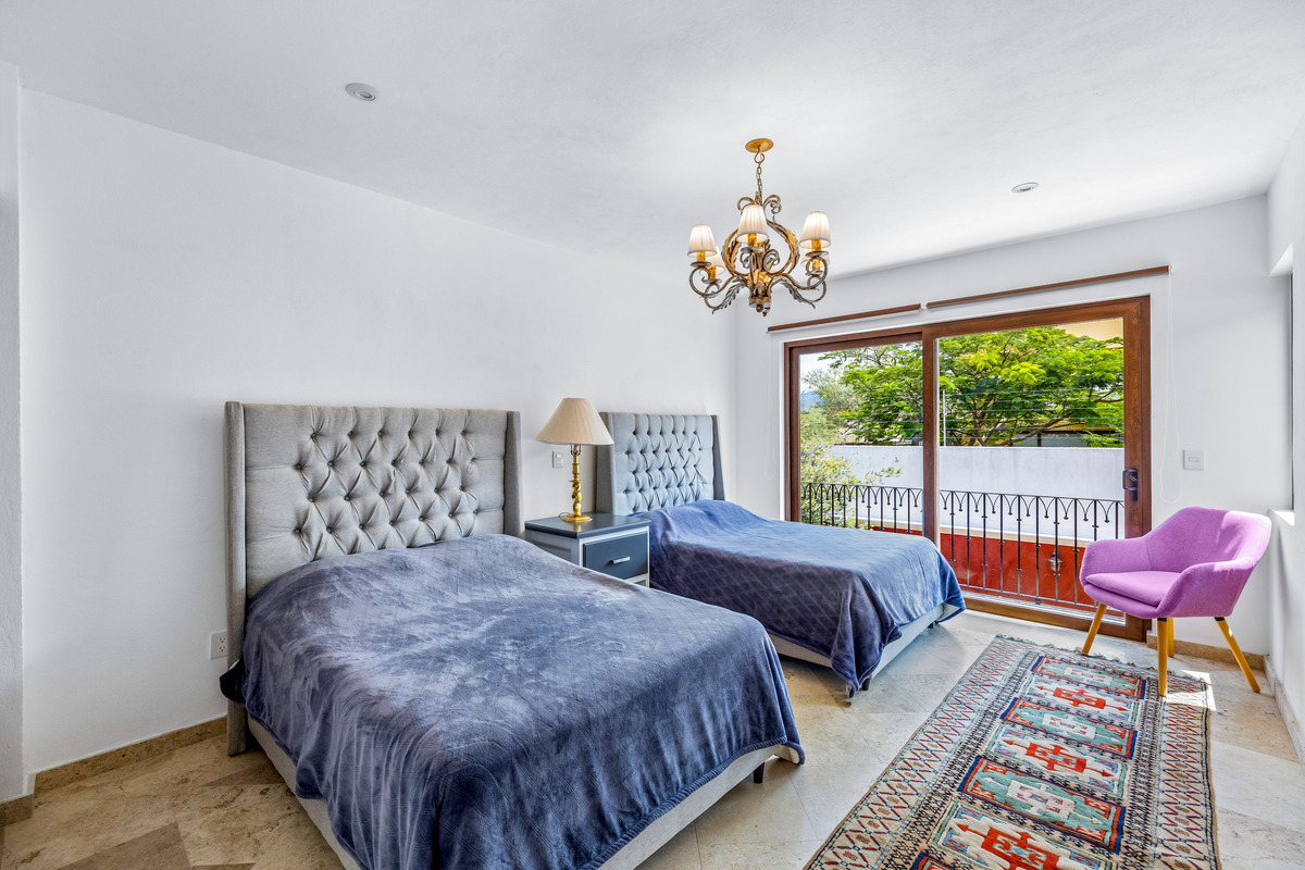 This spacious, light-filled home blends comfort with timeless Mexican charm. Featuring 3 bedrooms and 3.5 bathrooms, the property boasts travertine marble floors, selected double pane glass doors and windows*, lush gardens, and inviting terraces. It is the perfect combination for relaxed living and entertaining. The generous ground floor offers a seamless flow for gatherings and day-to-day comfort. A chef’s kitchen with an island, granite countertops, and a walk-in pantry connects to a breakfast area, formal dining room, and a stunning double-height living room with a beautiful fireplace. The primary suite, located on this level, includes a walk-in closet and a spacious bathroom with a Jacuzzi. Outdoors, enjoy two distinct garden spaces, one accented by a charming cantera fountain, the other adjoining a covered terrace with elegant wooden beams, ideal for alfresco dining or simply unwinding. Upstairs, two additional bedrooms each feature walk-in closets and private bathrooms, one with a shower/steam combination. A cozy TV room and an upper terrace complete the second level. Located in the sought-after Vista Antigua community, this home offers style, space, and comfort in one of the area’s most desirable settings.